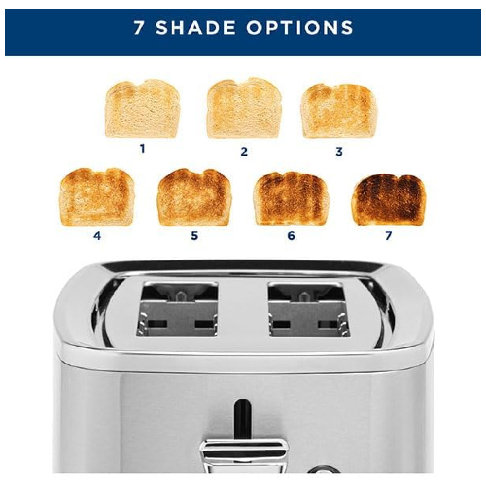 7 configurações de tonalidade Desfrute de uma variedade de opções de torradas graças ao ajuste de múltiplas tonalidades que oferece 7 tonalidades de cozimento do mais claro ao mais escuro, satisfazendo as preferências de todos.