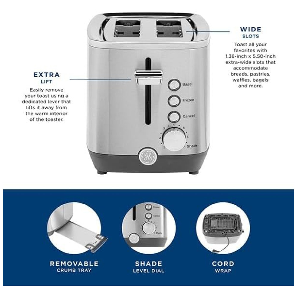 Torradeira 2 Fatias 3 Configurações 7 Níveis 850W Aço Inoxidável 110v GE G9TMA2SSPSS Prateado