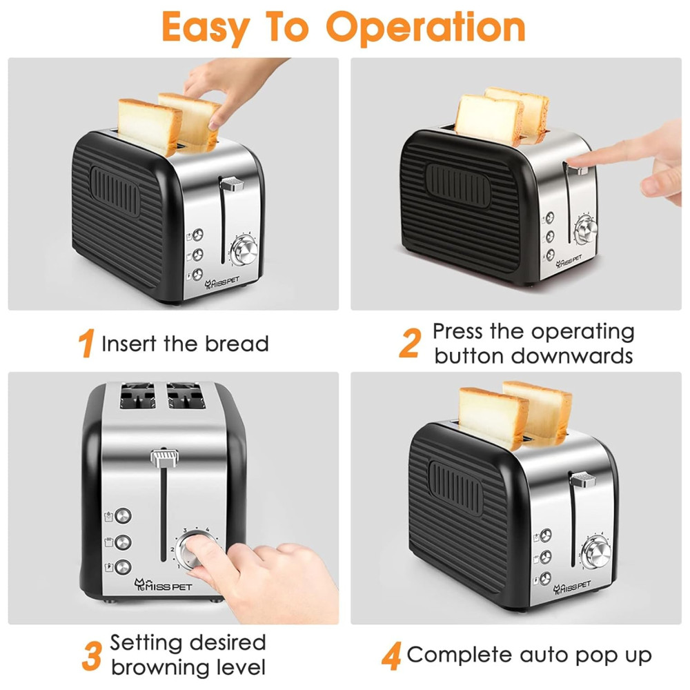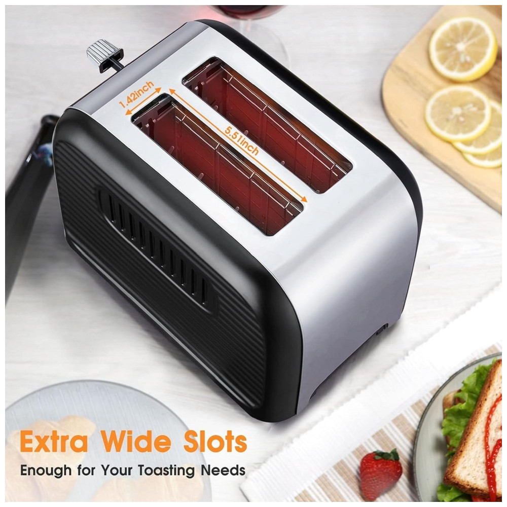 A torradeira de 2 fatias com ranhura C 12 X de largura, tornando a adequada para vários pães, como torradas francesas grossas e finas, bagels , muffins, panquecas congeladas, pastéis para torradeira, pão fatiado à mão e muito mais Quando terminar de torrar, a alavanca do carro extraelevante irá saltar automaticamente e levantar o pão com segurança.