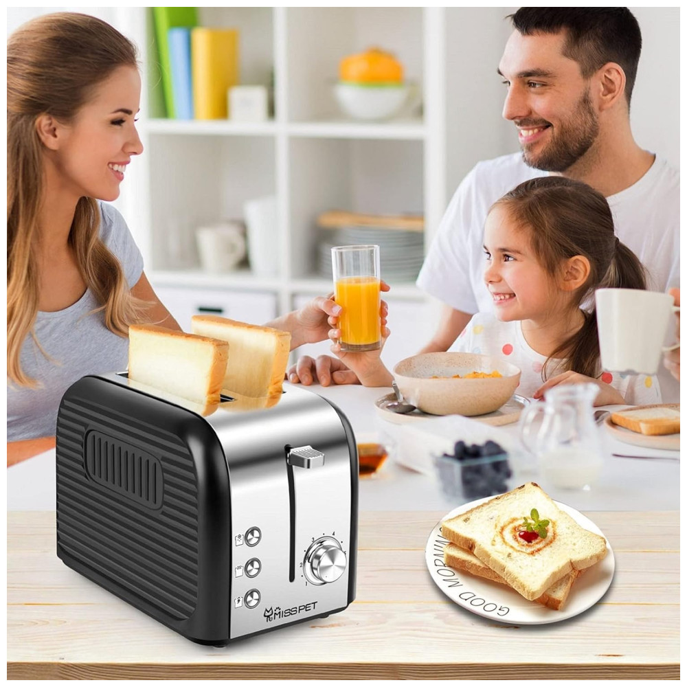 A torradeira moderna de aço inoxidável ALES de 2 fatias oferece 6 configurações de torragem e uma gama completa de opções de tostagem para permitir a personalização perfeita de qualquer pedaço de pão, dando lhe tons claros, dourados e escuros de torradas. Satisfaça os gostos de todos os membros da família.