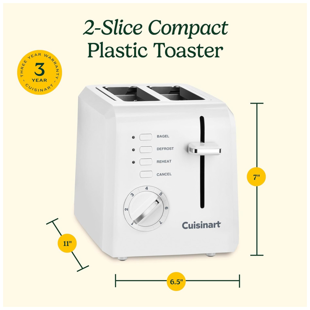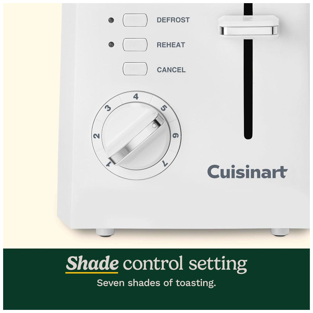 A torradeira clássica recebe uma atualização moderna com a Torradeira de Plástico Compacta da Cuisinart. Seu estilo contemporâneo permite que tenha uma boa aparência em qualquer ângulo, durante o uso ou zenado à vista de todos no balcão.