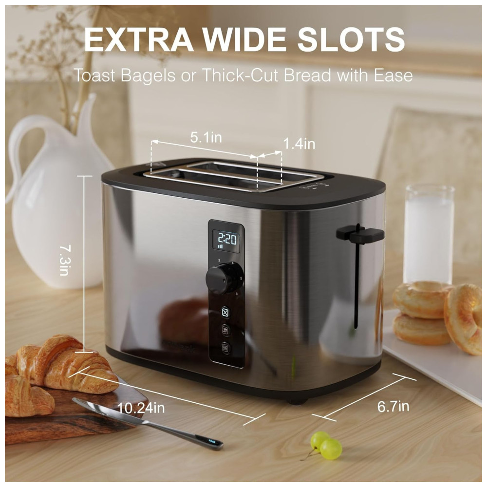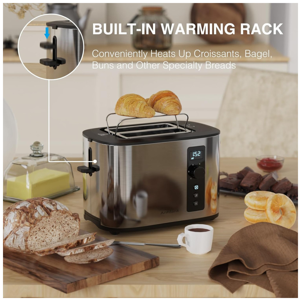 A torradeira Anfilank é perfeita para quem adora pães variados e especiais. Com suas duas fendas extra largas de 1,4 polegadas, você pode torrar desde pães extra grossos, como torradas do Texas, até bagels e outros pães especiais.