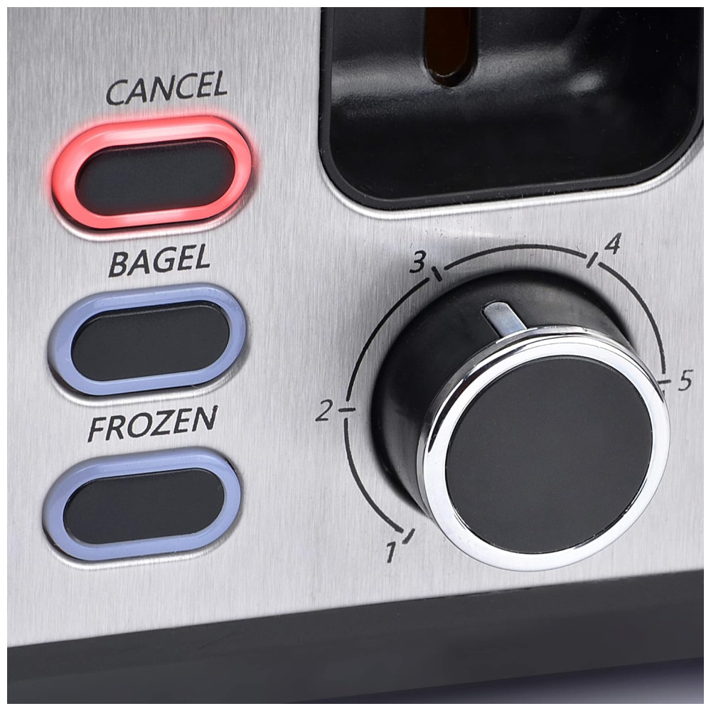 Este produto é um modelo exclusivo de torradeira que apresenta duas marcas famosas, o ícone do Mickey em um slot e a silhueta de Plutão no outro. Possui slots extra largos e autocentrantes que permitem a torra de bagels e pães artesanais mais grossos. Além disso, possui elevação extra que facilita a remoção dos alimentos torrados. O controle de escurecimento é ajustável, permitindo que o usuário escolha o tom de torrada desejado. Os botões são iluminados e incluem as opções Canel, Bagel e Reheat. A torradeira vem com uma bandeja de migalhas deslizante e um envoltório de cabo conveniente. Este modelo opera com 120 volts e 850 watts, e possui um plugue polarizado de 2 pinos, sendo ideal para uso doméstico.
