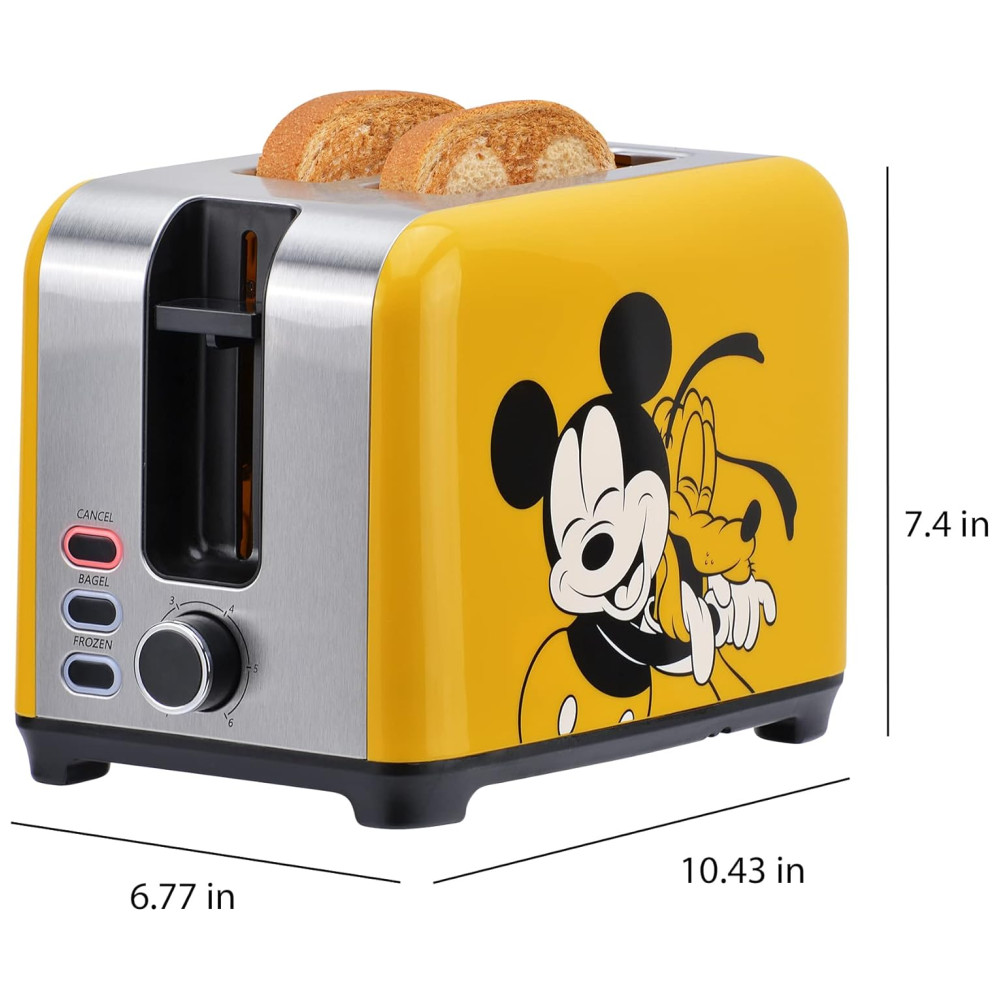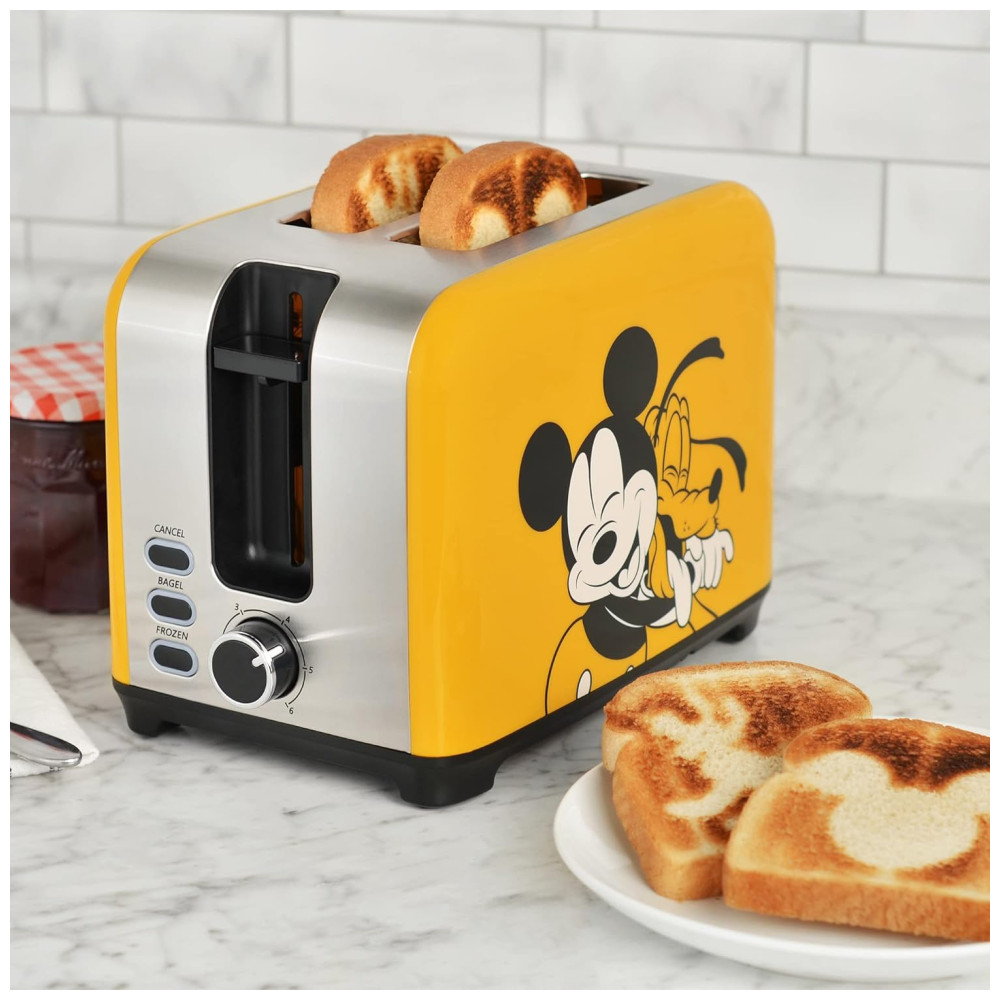 Torradeira 2 Fatias com Controle de Tostagem Ajustável e Botões Iluminados 850W Disney Mickey e Plutão Amarela