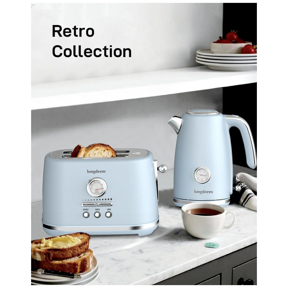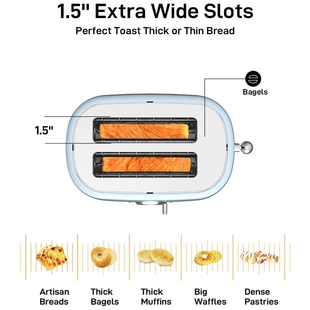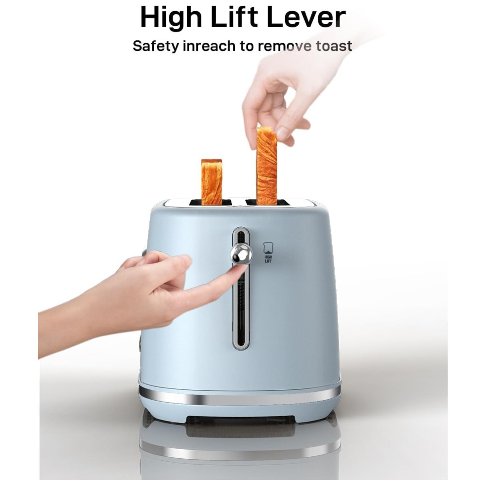 Torradeira 2 Fatias com Desligamento Automático Bandeja de Migalhas e 6 Níveis de Tostagem 110V 1000W LONGDEEM Azul