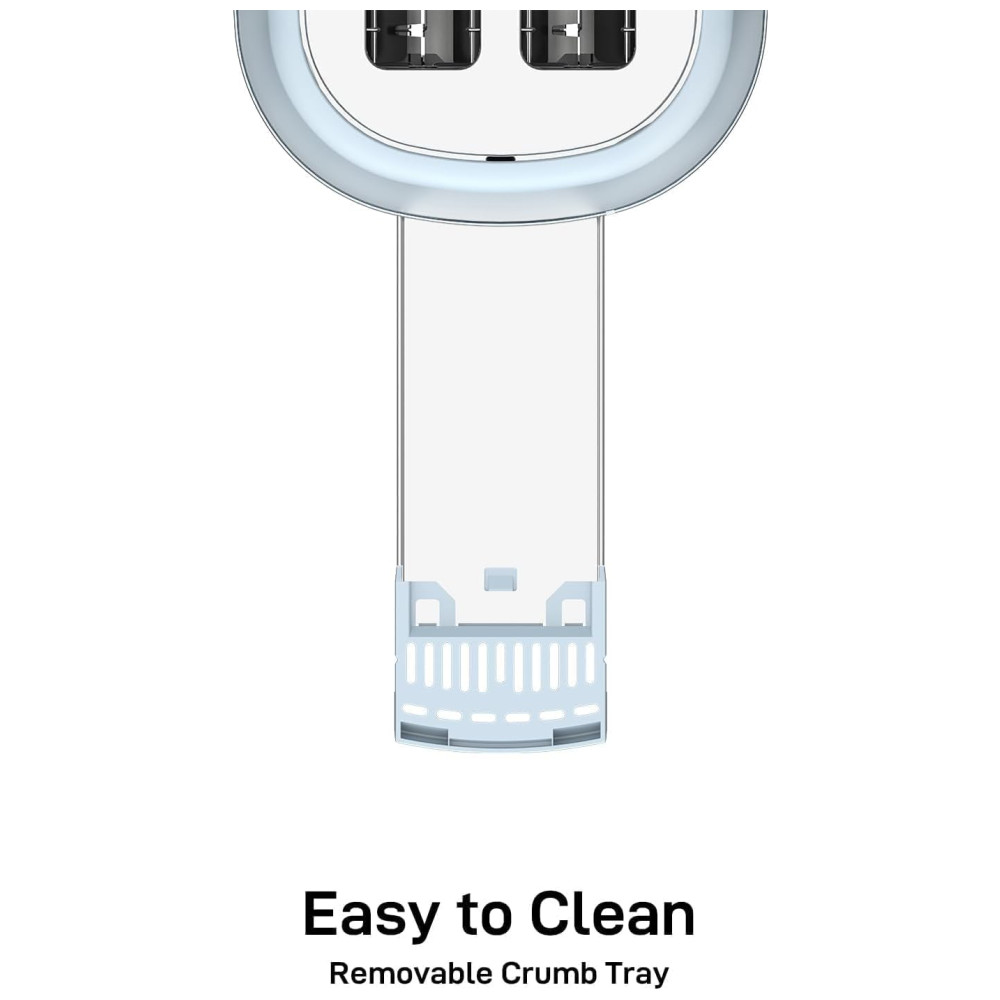 Esta torradeira Longdeem promete limpeza fácil com sua bandeja de migalhas frontal com design inteligente. Deslize o para fora, limpe as migalhas e deslize o de volta sem precisar levantá lo. Inclui também um cabo de alimentação de 1 metro convenientemente roteado na parte traseira e um enrolador de cabo para armazenamento organizado.