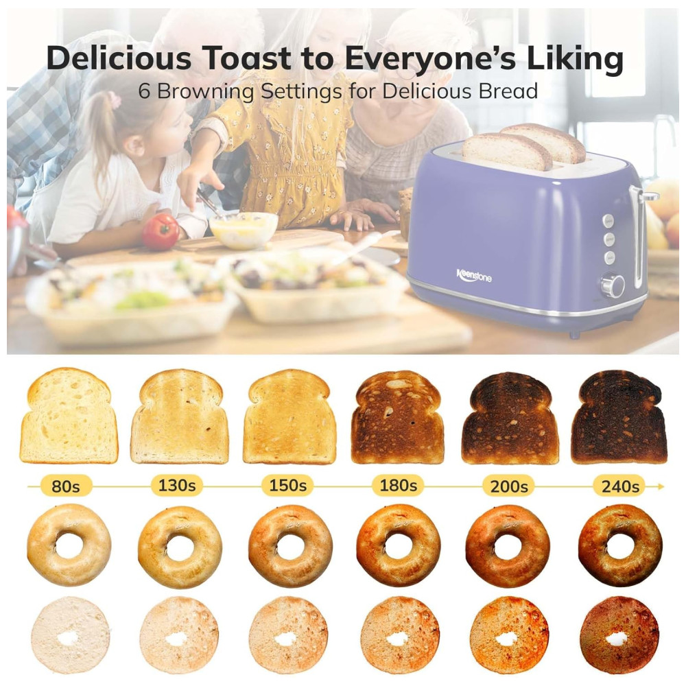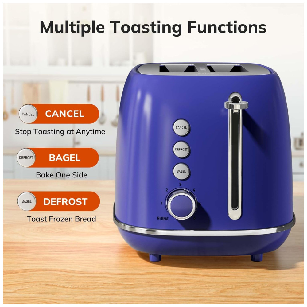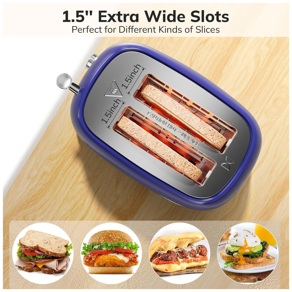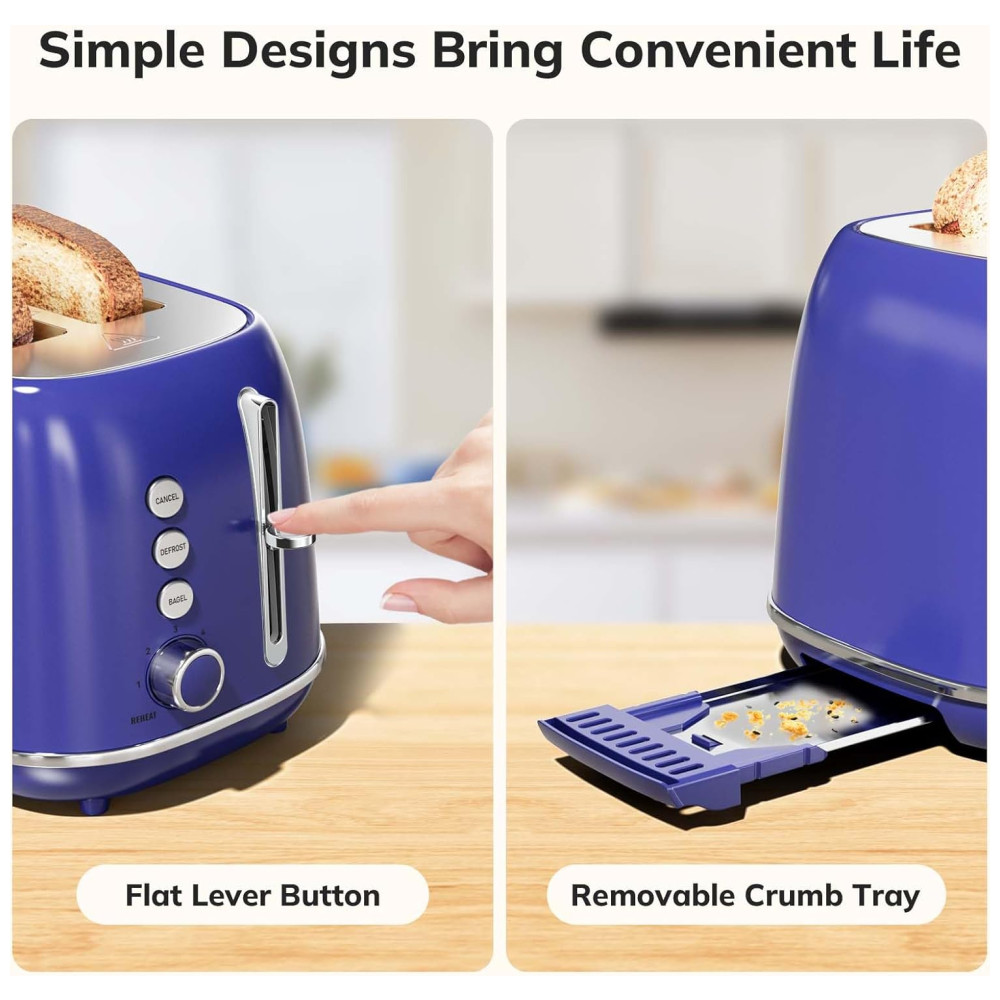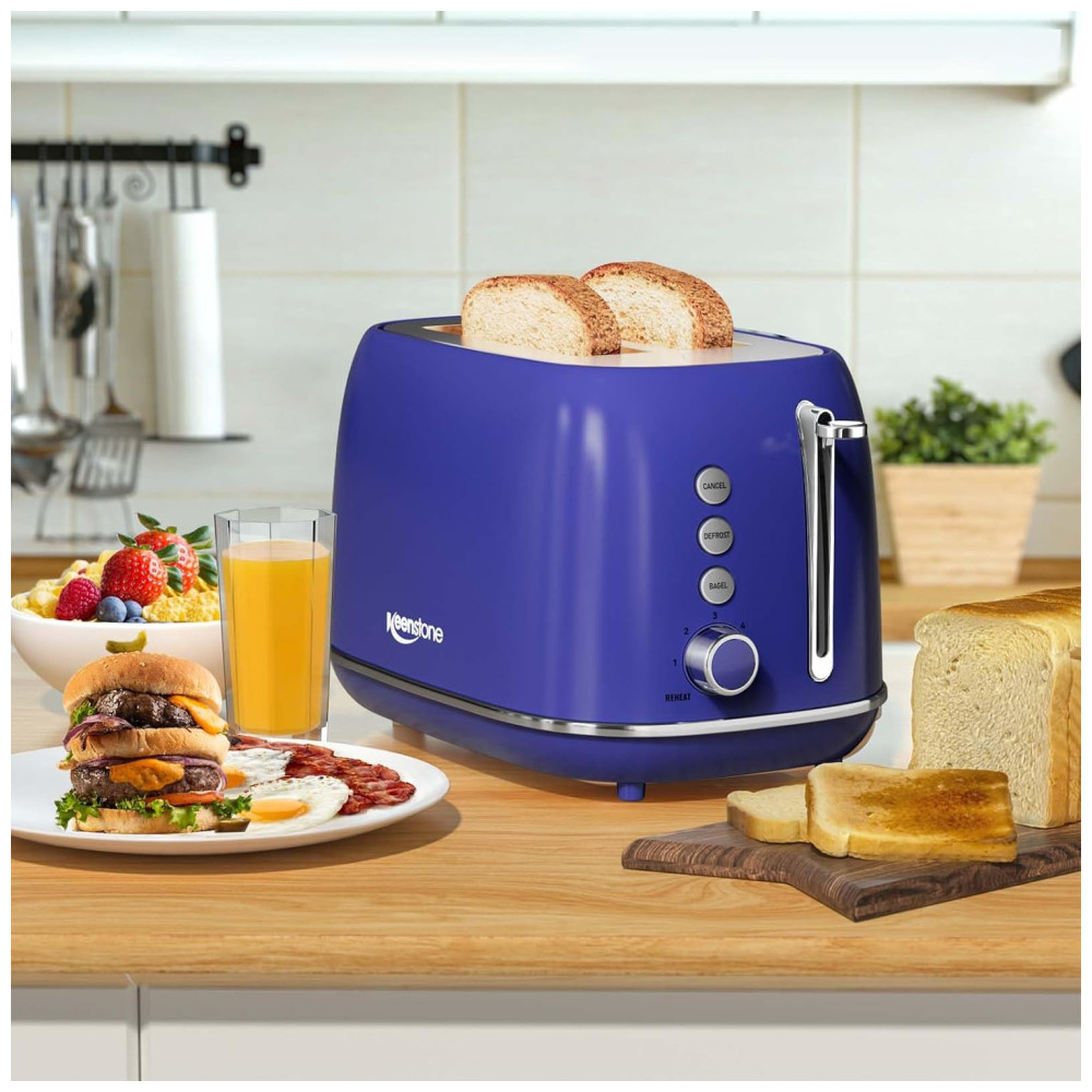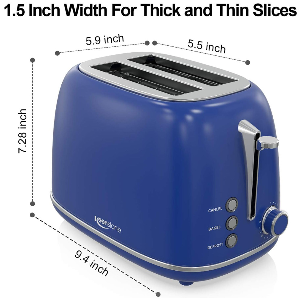 Torradeira Retro Keenstone 2 Fatias Inox Azul Escuro Fendas Largas 6 Níveis de Tostagem 800 W 110 V