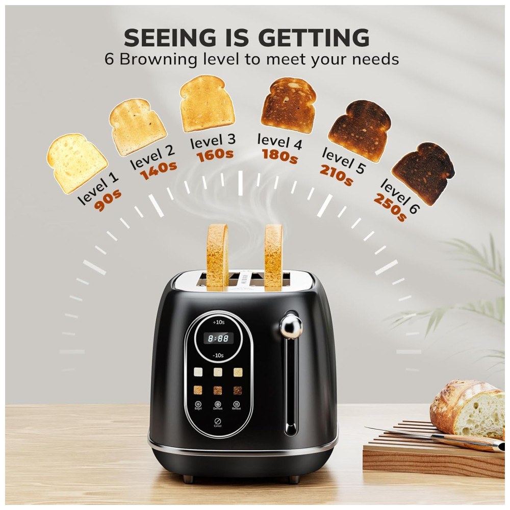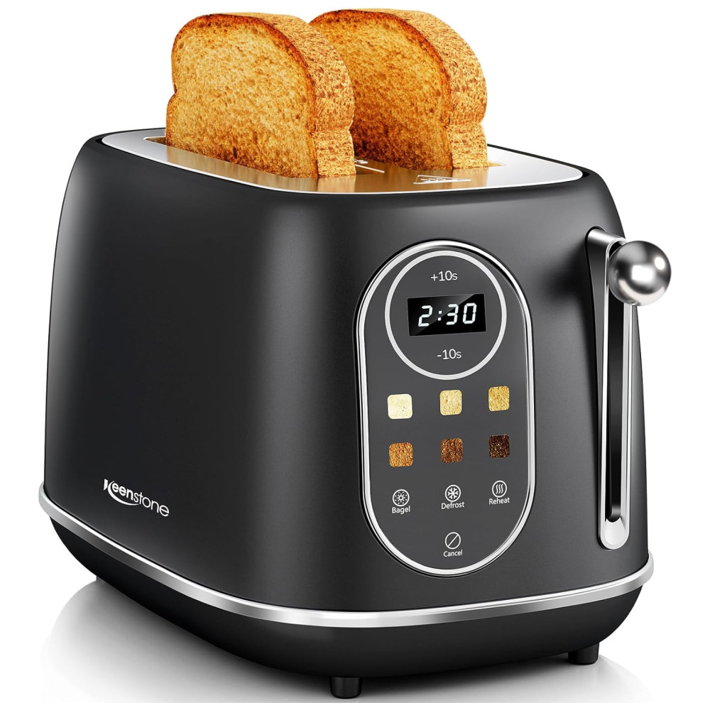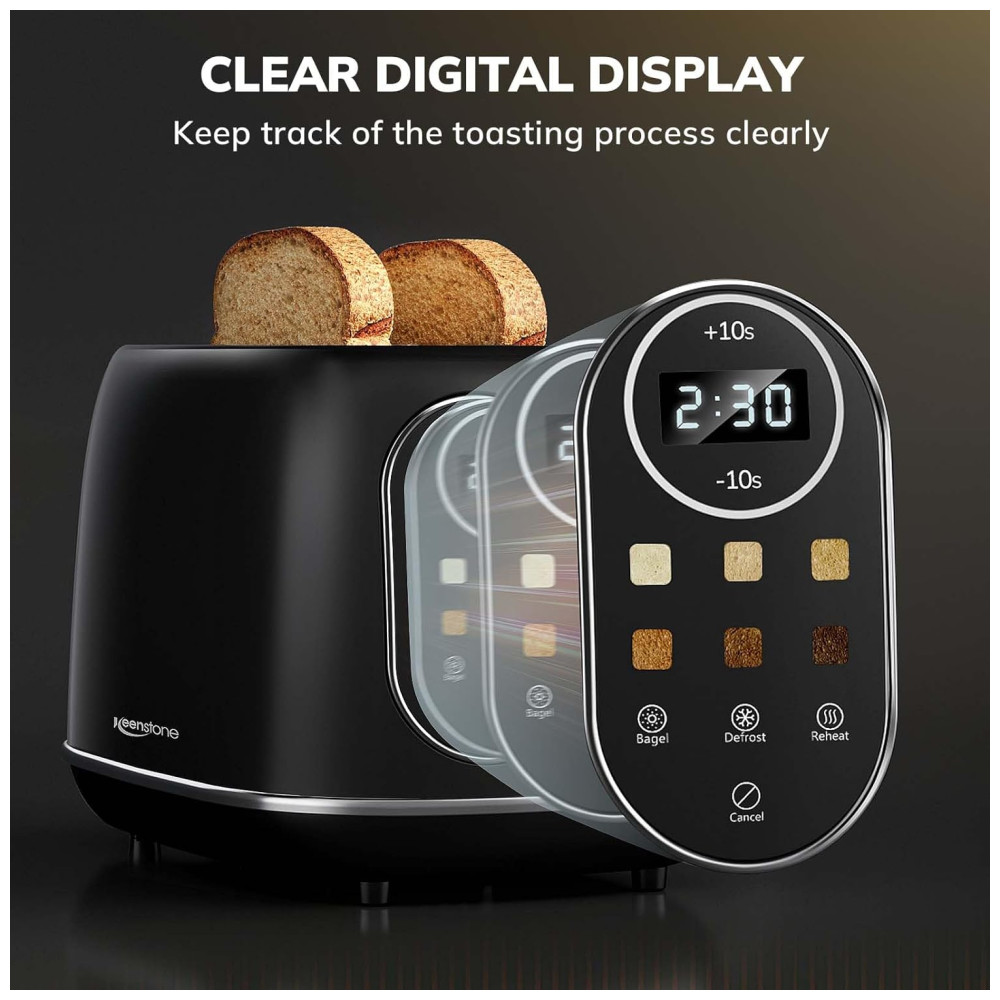Torradeira 2 Fatias com Painel Digital Recursos para Bagel e 6 Níveis de Tostagem 110V 800W Keenstone Preta