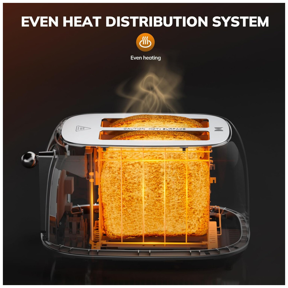 O design de slot adaptável acomoda diferentes formatos e tamanhos de pão, garantindo um ajuste ideal para diversos tipos de pães. Além de sua funcionalidade, a torradeira Keenstone possui uma elegante construção em aço inoxidável com um toque de design retrô, adicionando sofisticação à sua bancada.