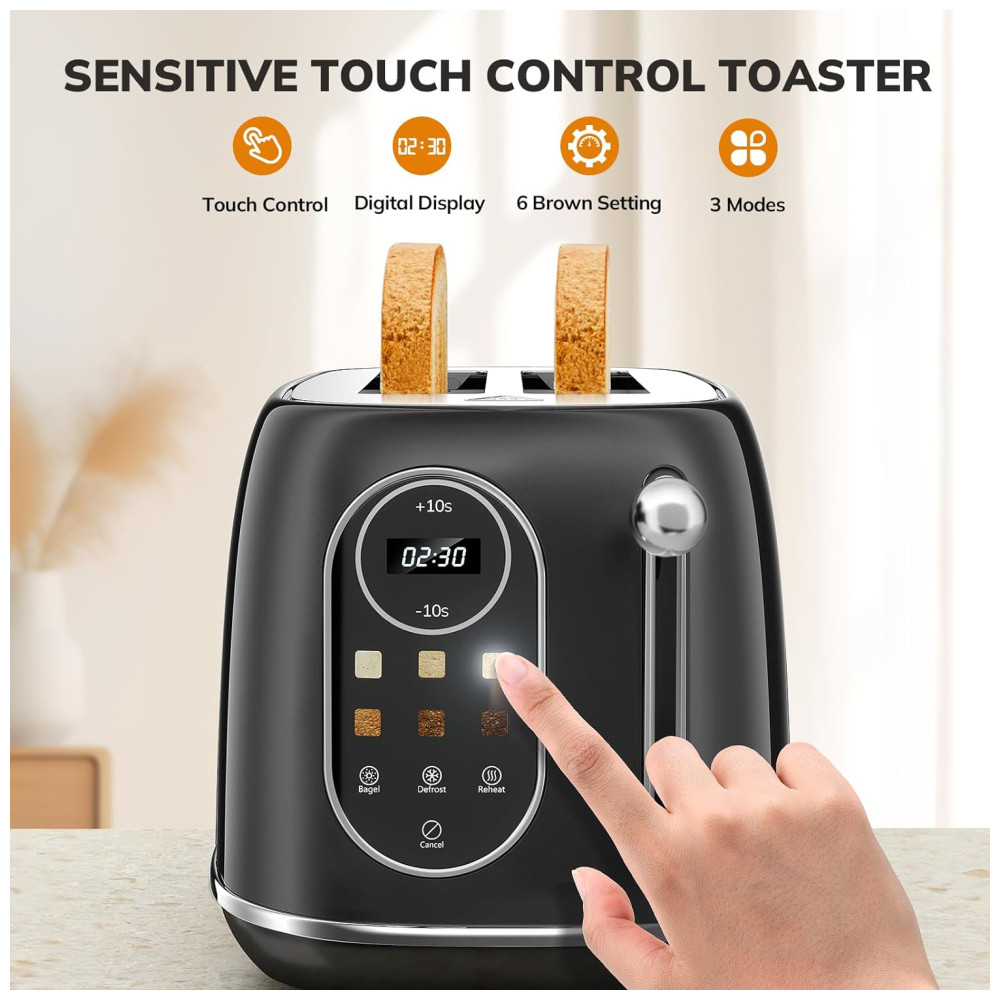 Descubra a torradeira de controle de toque de última geração, equipada com uma tela sensível ao toque intuitiva. Seu design moderno e sofisticado não só facilita o uso, mas também adiciona um toque elegante à sua cozinha.