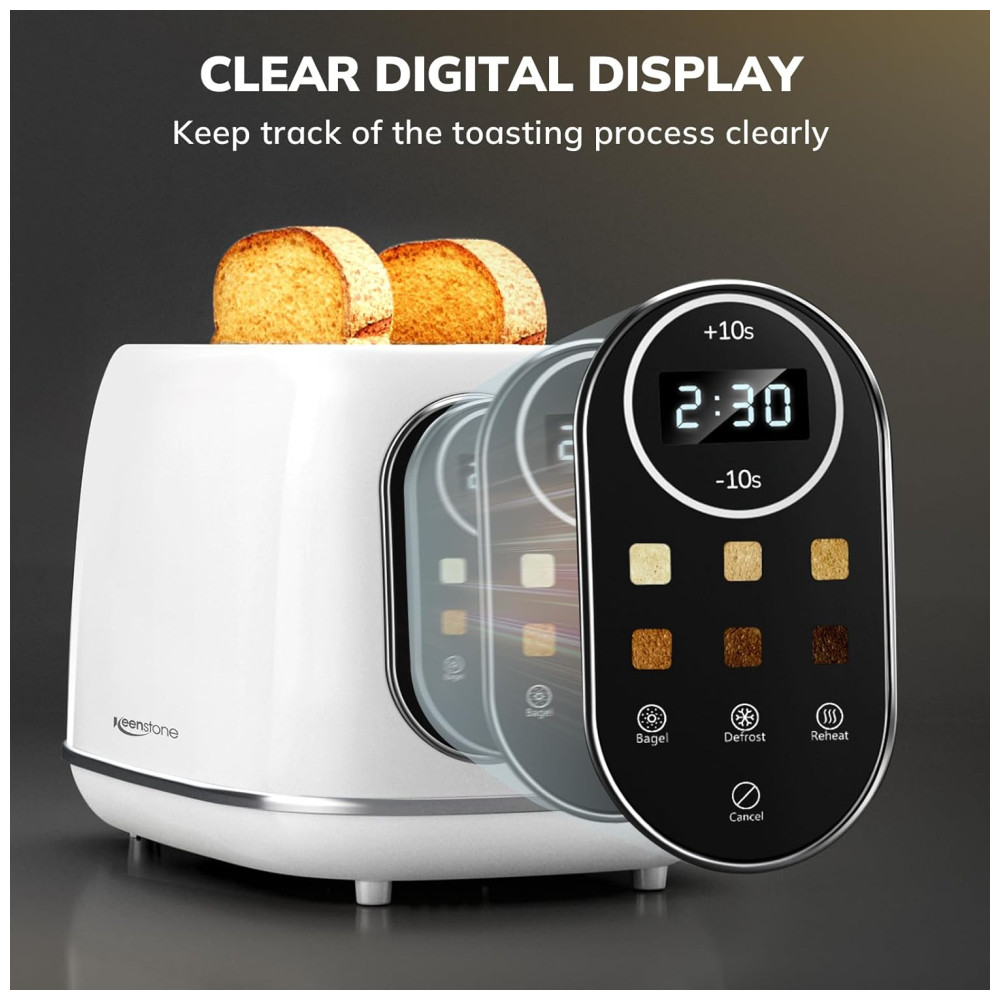 Torradeira 2 Fatias com Recursos para Bagel 6 Níveis de Tostagem e Bandeja de Migalhas Removível 110V 800W Keenstone Branca