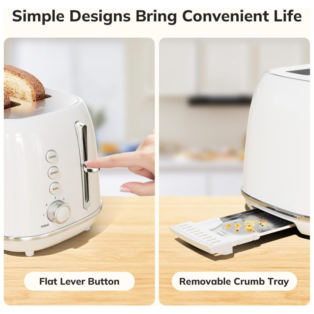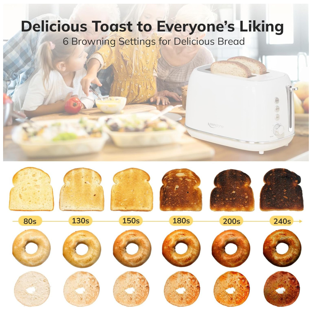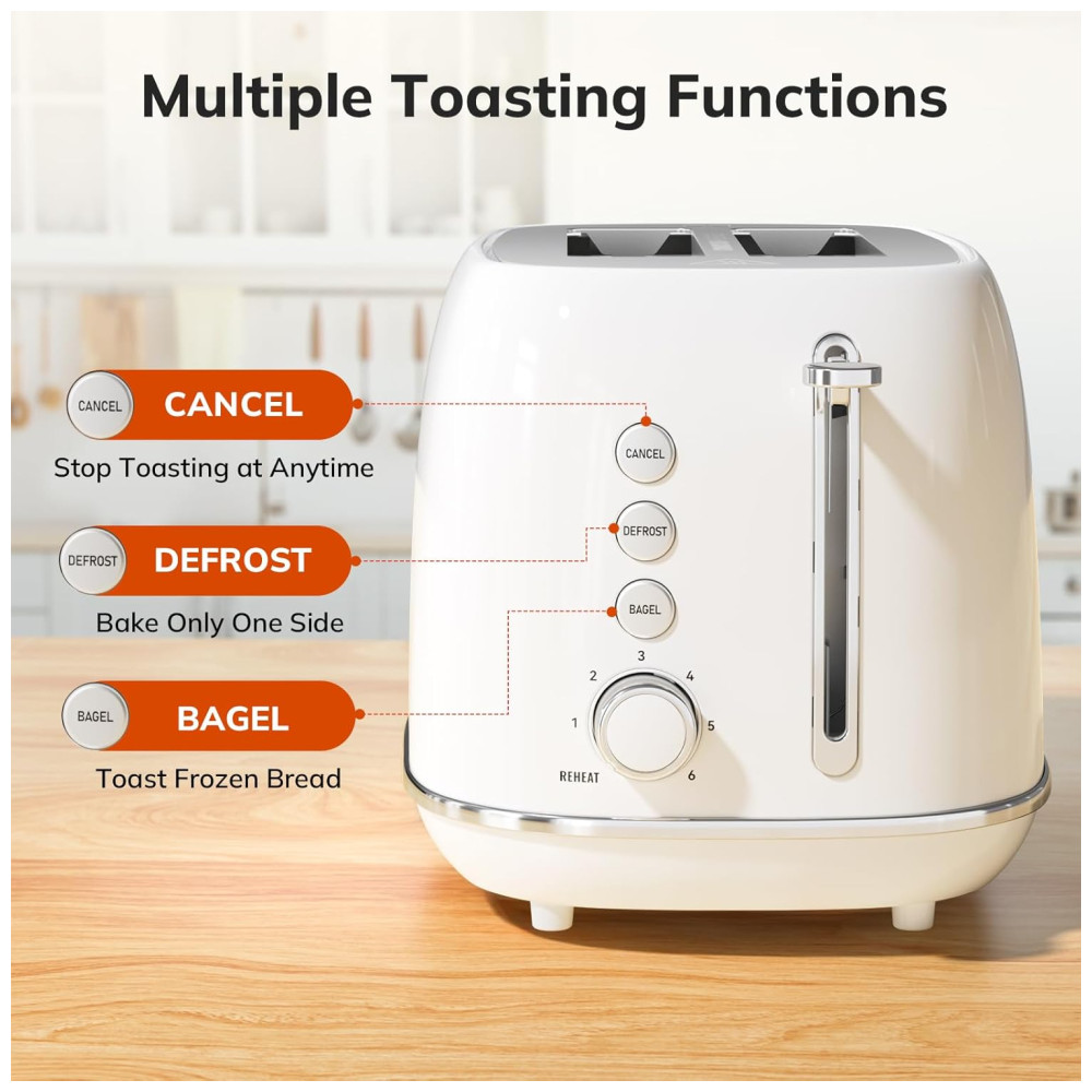 Torradeira 2 fatias torradeira Retro de aço inoxidável com função de bagel ranhuras largas bandeja de migalhas branca KEENSTONE Branco