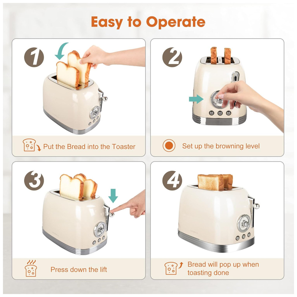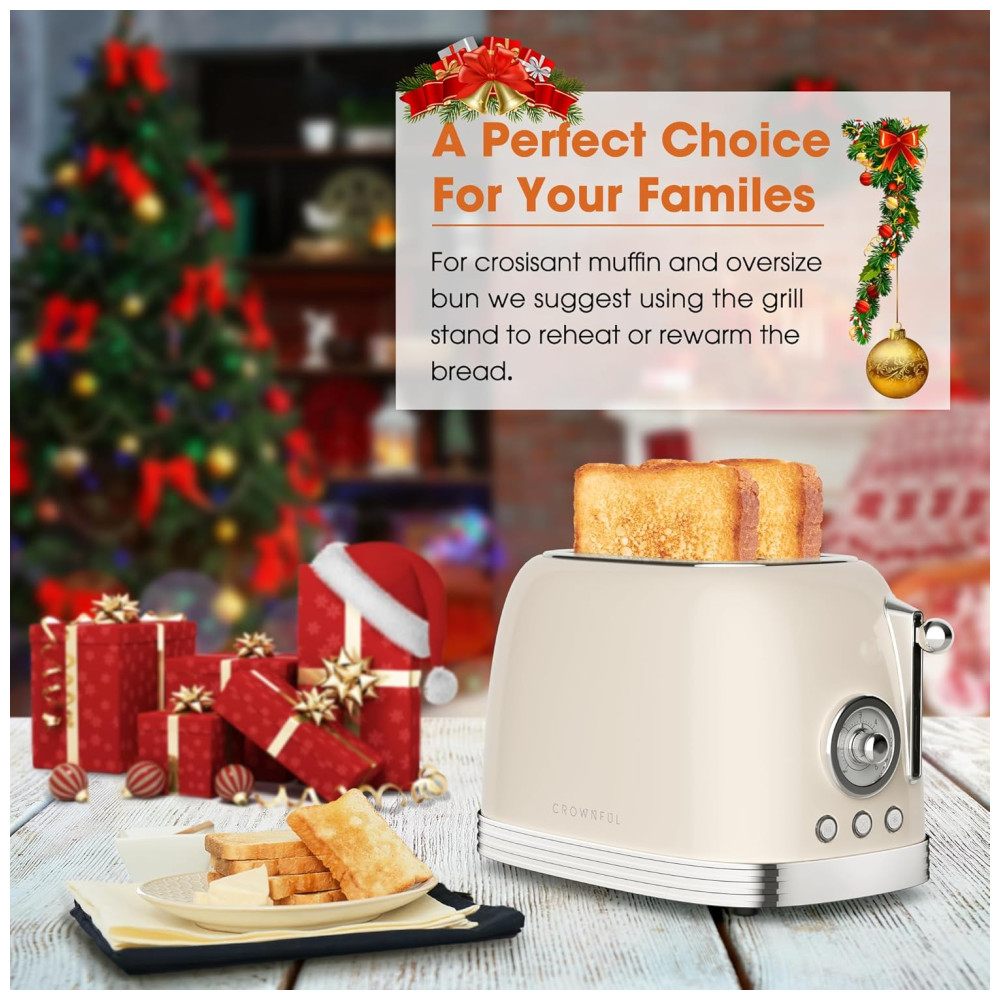 Torradeira 4 Fatias Aço Inoxidável com Suporte para Grelha 900W 110v CROWNFUL WT 330D Beje