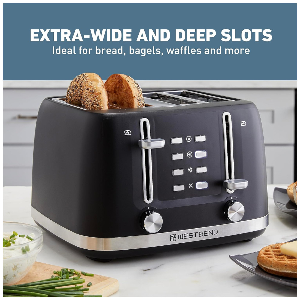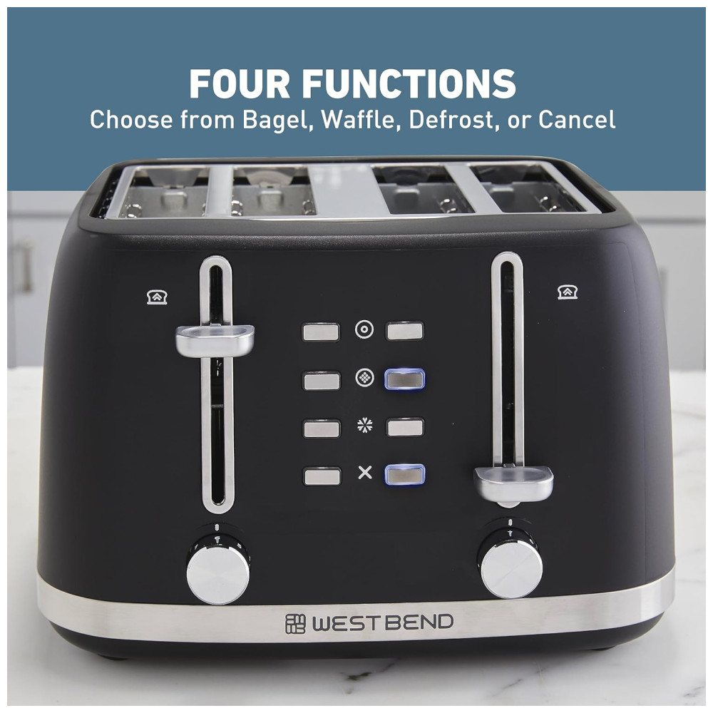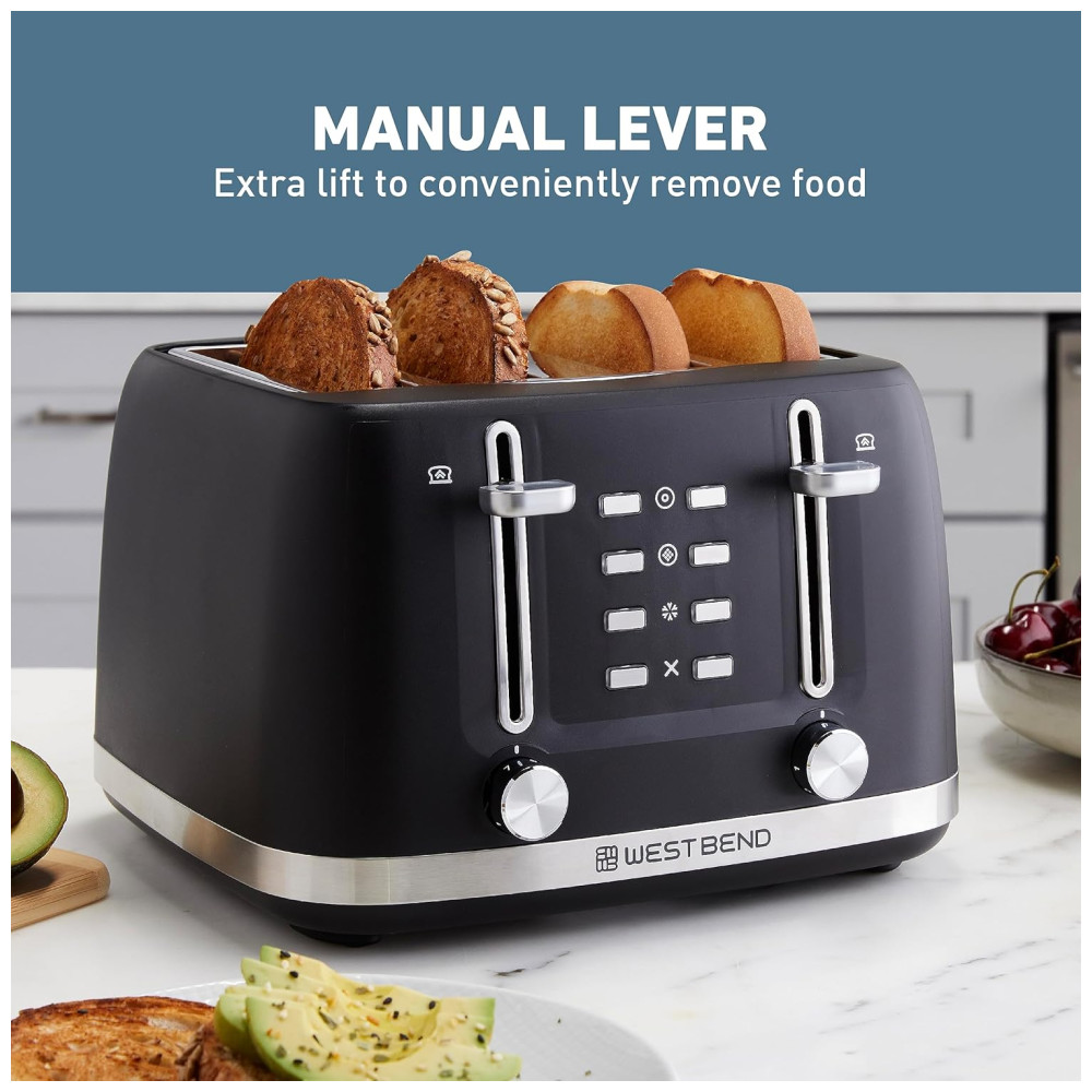 Torradeira 4 Fatias com 7 Níveis de Tostagem Alavanca de Elevação Manual e Desligamento Automático 1500W West Bend Preta
