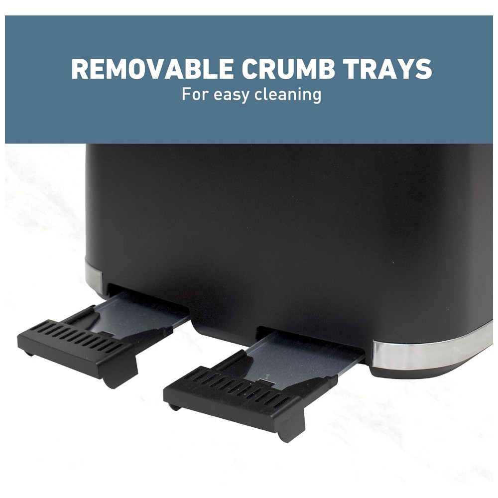 Este produto possui 4 slots extralargos e profundos com guias autocentrantes, ideais para torrar pães, bagels, waffles e outros alimentos. Possui também uma alavanca de elevação manual para facilitar a remoção dos alimentos torrados. Os botões grandes e fáceis de usar permitem que você escolha entre quatro funções com ícones retroiluminados: Bagel, Waffle, Descongelar e Cancelar. Além disso, possui um controle de escurecimento ajustável de 7 níveis para resultados mais precisos e consistentes. O produto também conta com recursos de segurança, como o AntiJam e AutoShutOff, proporcionando maior segurança durante o uso.