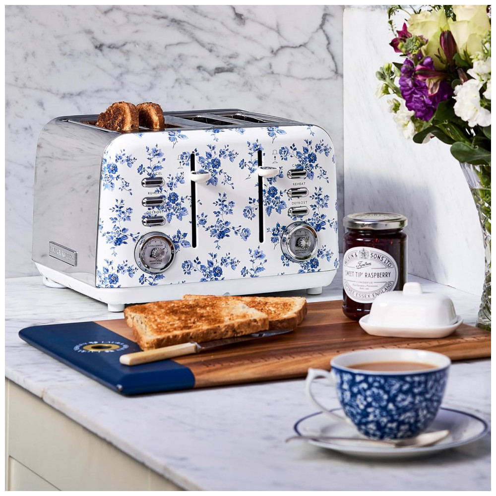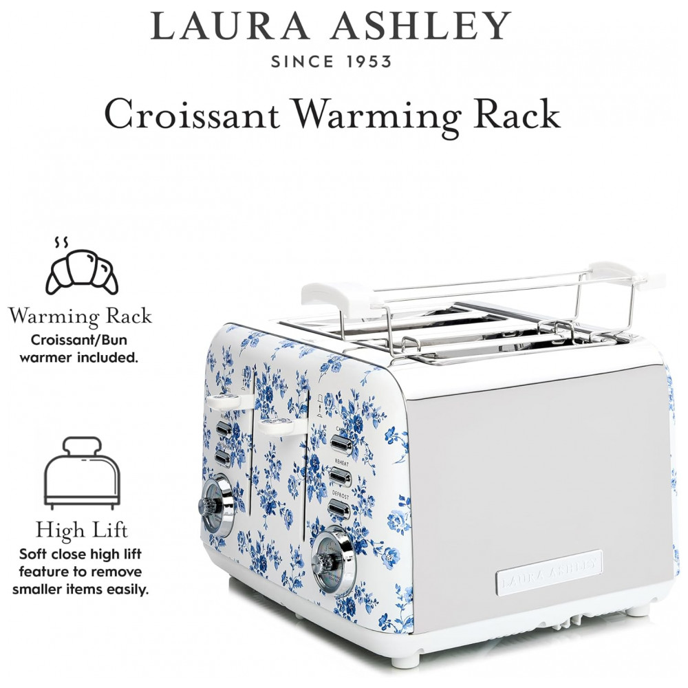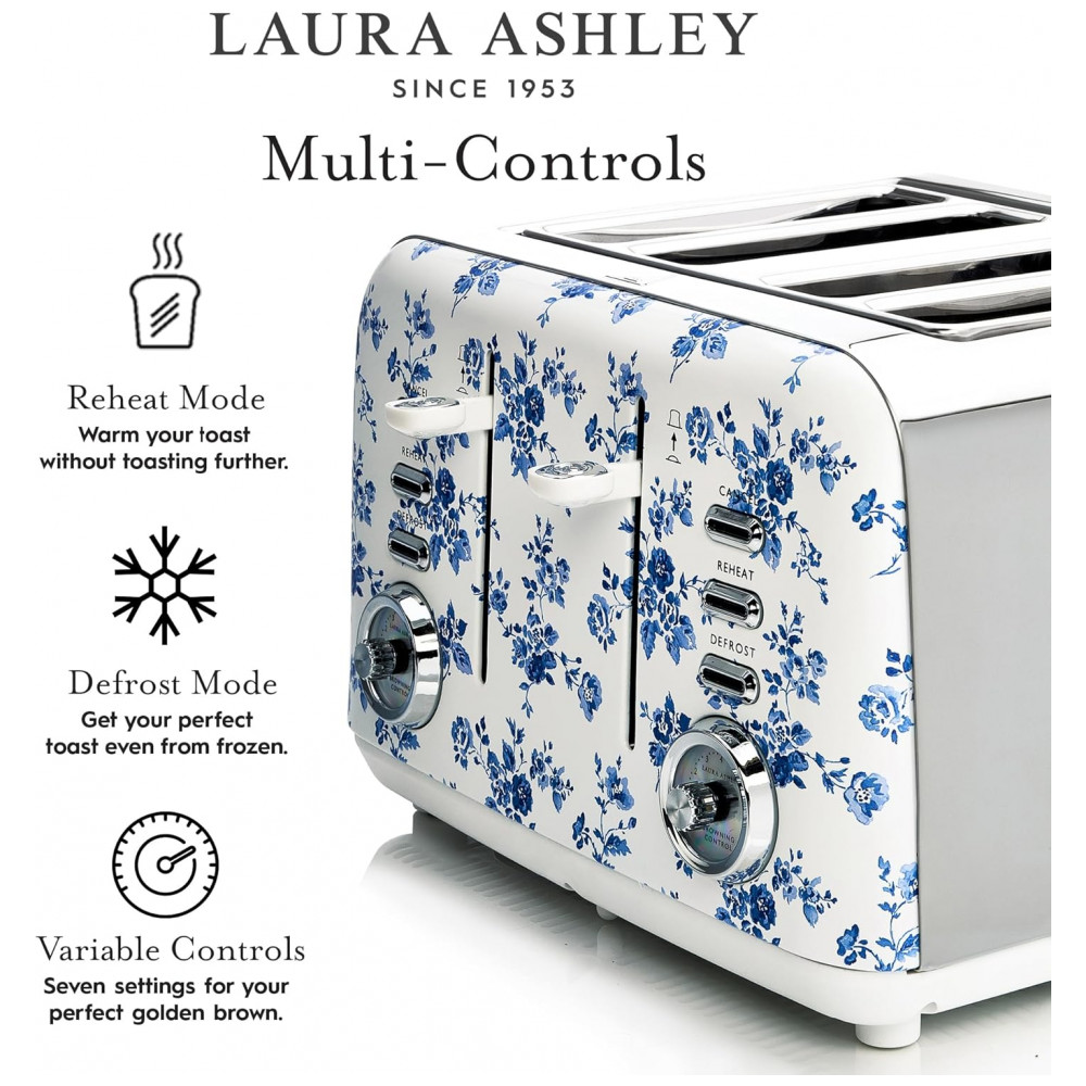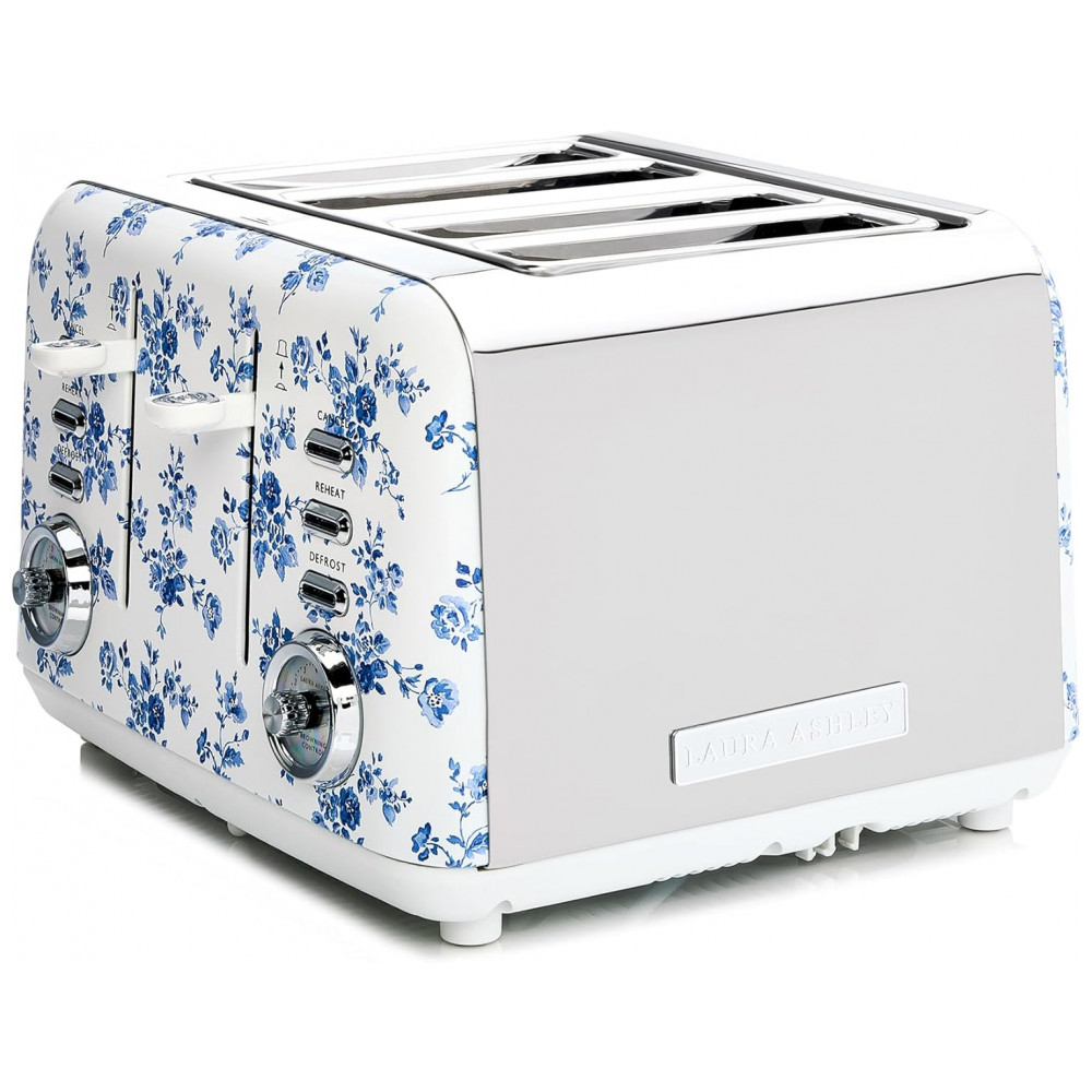 Torradeira 4 Fatias em Aço Inox Laura Ashley Rosa China com estampa floral Slots Largos 7 Níveis Funções Descongelar Reaquecer Rack para Croissants 1500W 110V