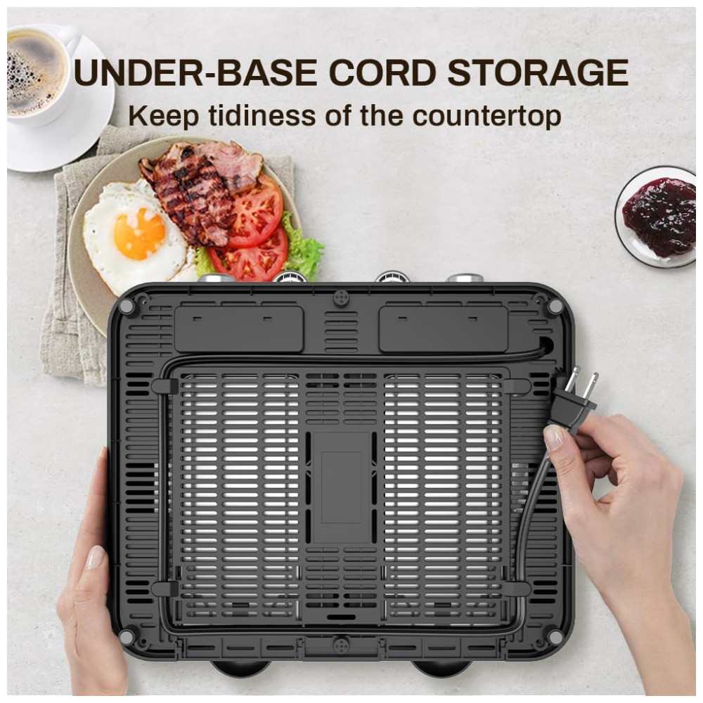 A Torradeira 4 Fatias Preta é a combinação perfeita de estilo e eficiência. Com 4 espaços extra largos de tostagem em aço inox preto, ela é ideal para tostar pães, bagels e muito mais. Os controles independentes duplos permitem atender a diferentes gostos ao mesmo tempo, garantindo agilidade e variedade. Com 7 ajustes de tostagem, é possível escolher entre 7 tons diferentes, dos mais claros aos mais escuros, agradando a todos. Além disso, possui 4 funções principais: Bagel, Descongelar, Reaquecer e Cancelar, com indicadores LED azuis. As aberturas extra largas acomodam facilmente diversos tipos de pães, biscoitos, waffles e bagels. Duas bandejas de migalhas removíveis facilitam a limpeza, tornando a manutenção uma tarefa simples. O design ergonômico inclui alavanca de elevação, armazenamento de cabo na base e base antiderrapante, proporcionando praticidade e organização para a sua cozinha.