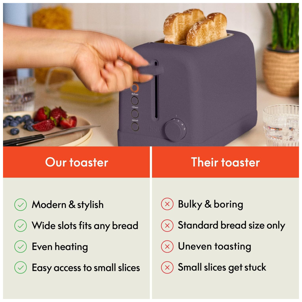 Eleve sua rotina matinal com a Torradeira BELLA de 2 fatias, onde o estilo encontra a funcionalidade de forma deliciosa. Com bordas arredondadas e detalhes modernos, nossos eletrodomésticos não apenas funcionam perfeitamente, mas também adicionam um toque contemporâneo à sua cozinha. Com seis ajustes precisos de tostagem, você pode escolher entre uma fatia levemente dourada ou um pão tostado bem crocante. As funções Bagel, Descongelar, Reaquecer e Cancelar facilitam obter a tostagem perfeita todas as vezes. O sistema de torradeira de 900 watts permite que você aproveite seu café da manhã ainda mais rápido. Disponível em quatro cores deslumbrantes (Ameixa, Sálvia, Leite de Aveia e Flor de Cerejeira), essa torradeira inteligente não é apenas um item essencial na cozinha, mas também uma ideia de presente elegante para novos apartamentos, dormitórios universitários e mais. O guia de centralização automática garante que todas as fatias sejam tostadas de forma uniforme. A limpeza é simples com a bandeja de migalhas removível, e as funções antientupimento e desligamento automático proporcionam tranquilidade adicional. Além disso, com o recurso de enrolar o cabo na base, sua bancada permanece organizada e bonita, tornando esta torradeira tão prática quanto bonita.