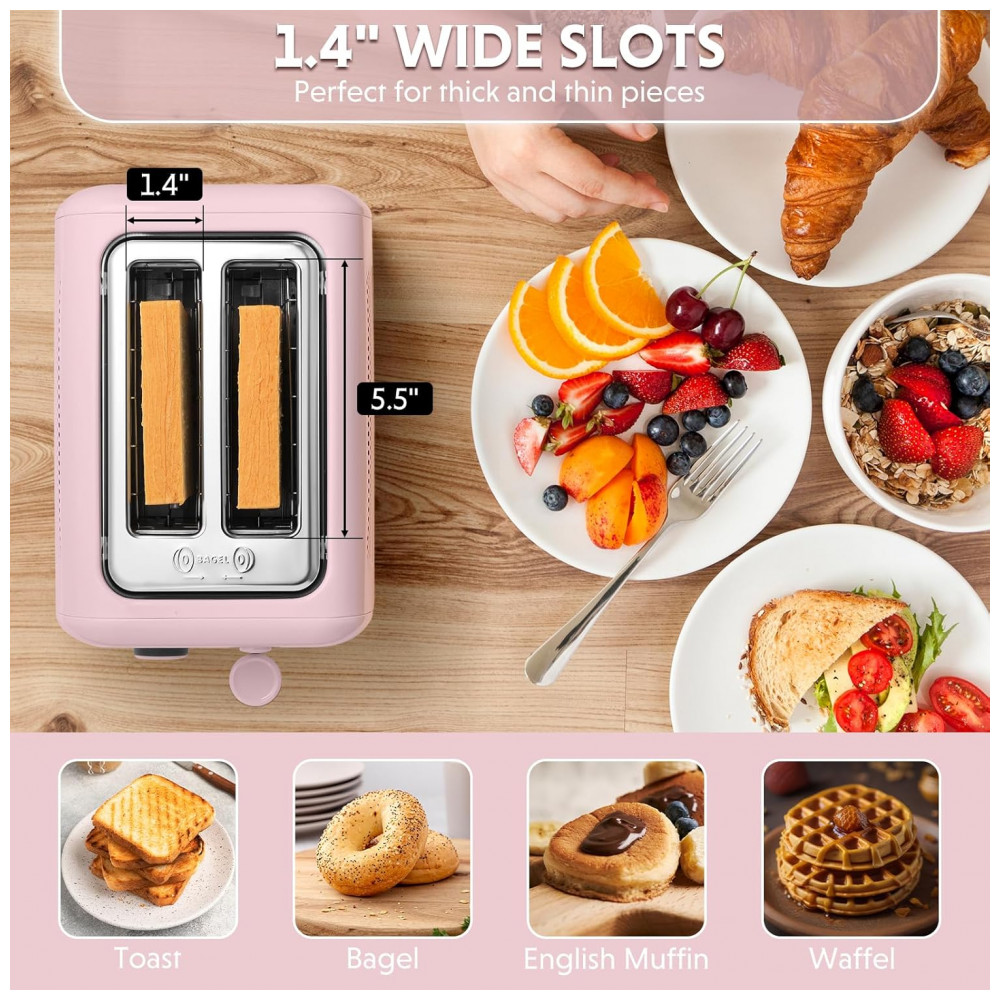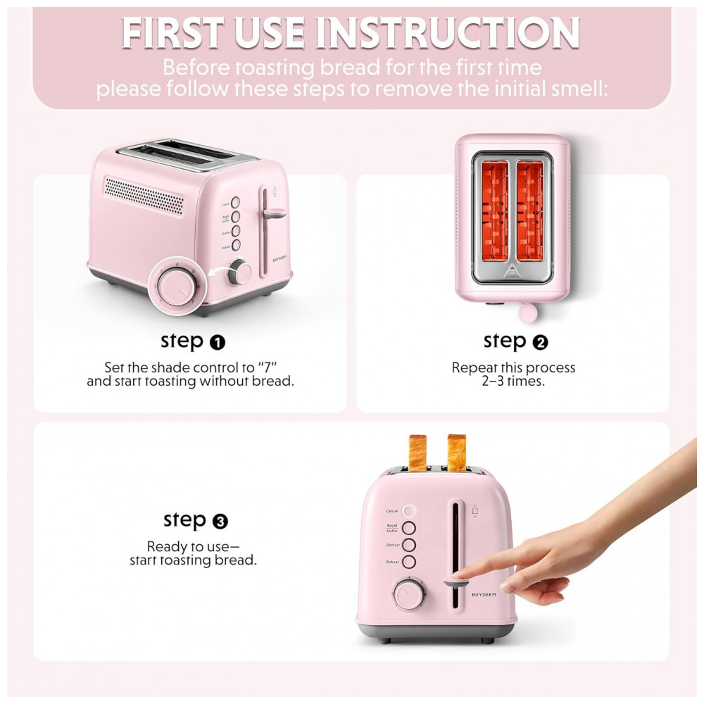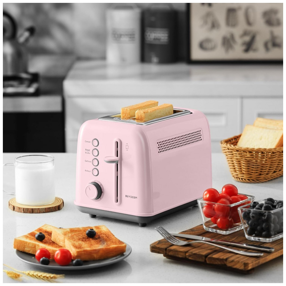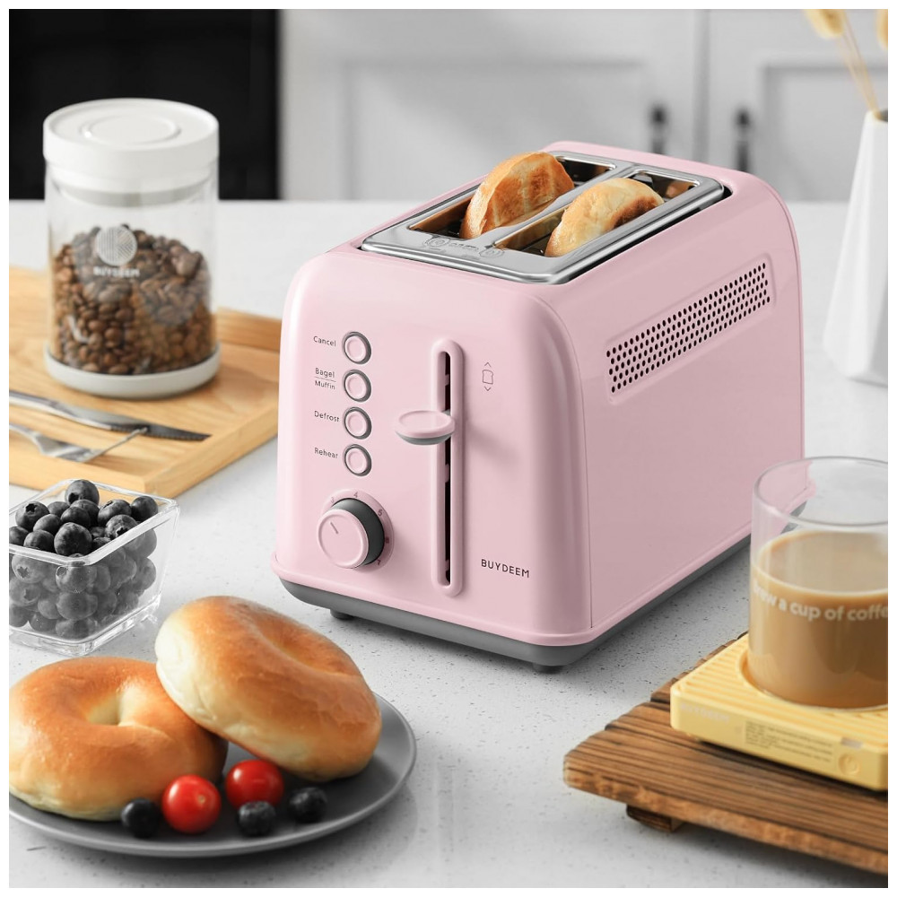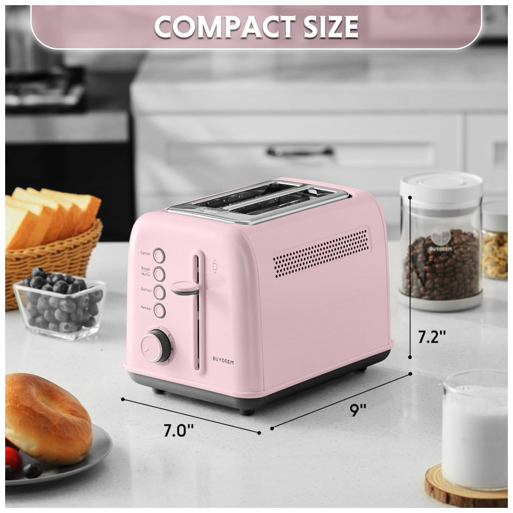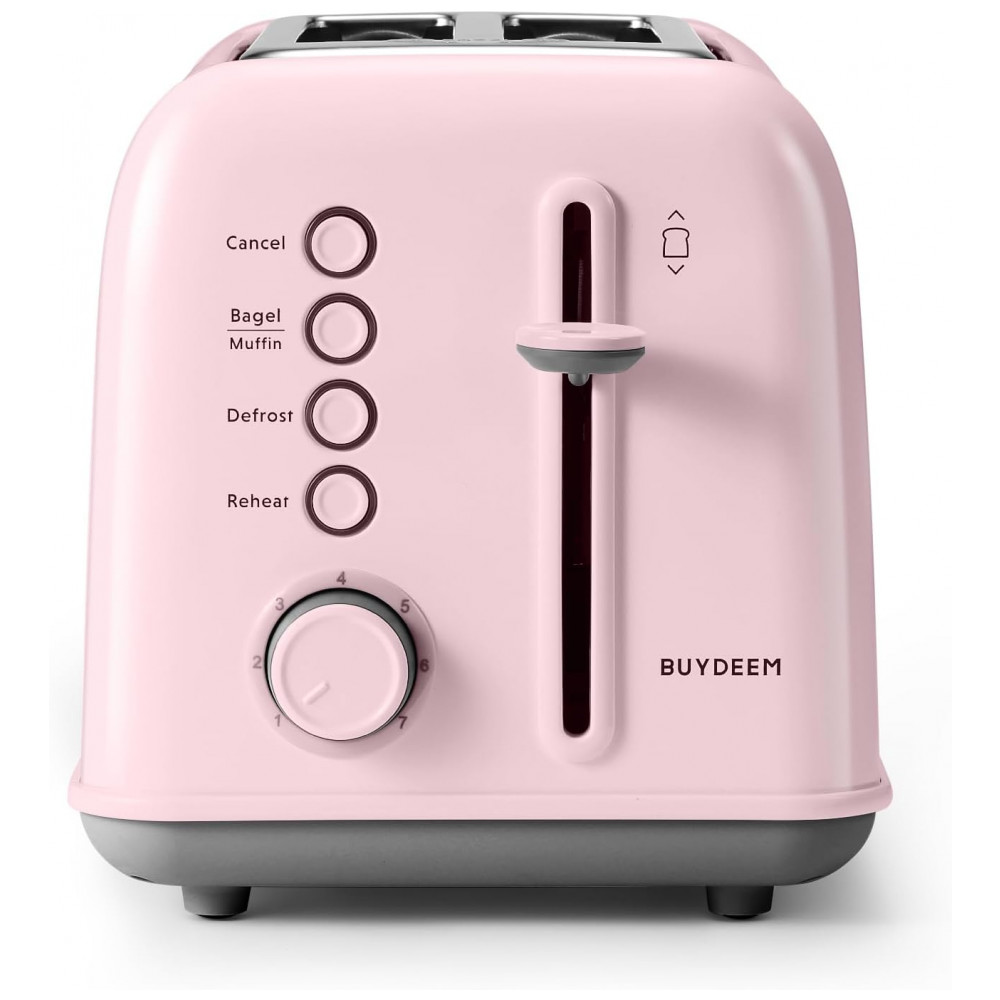 Torradeira BUYDEEM DT620 Rosa 2 Fatias com Fendas Largas Função Bagel e Muffin Bandeja de Migalhas Removível e 7 Níveis de Tostagem 110V
