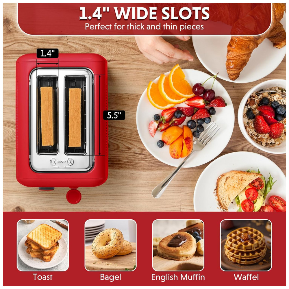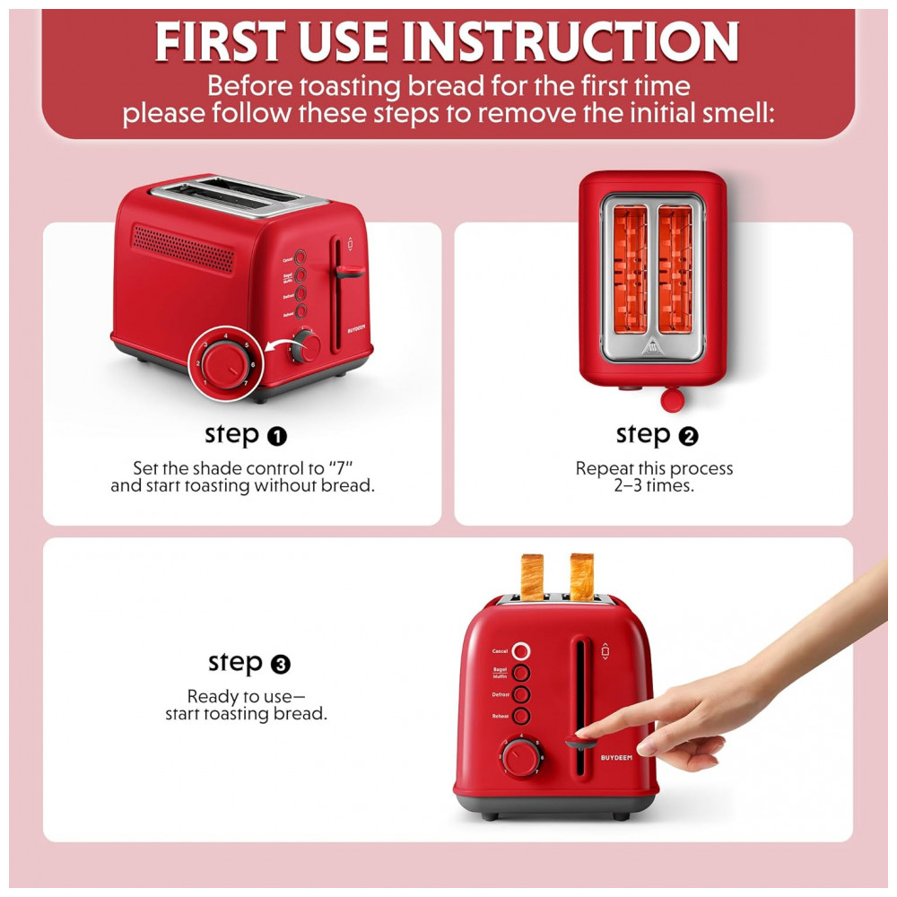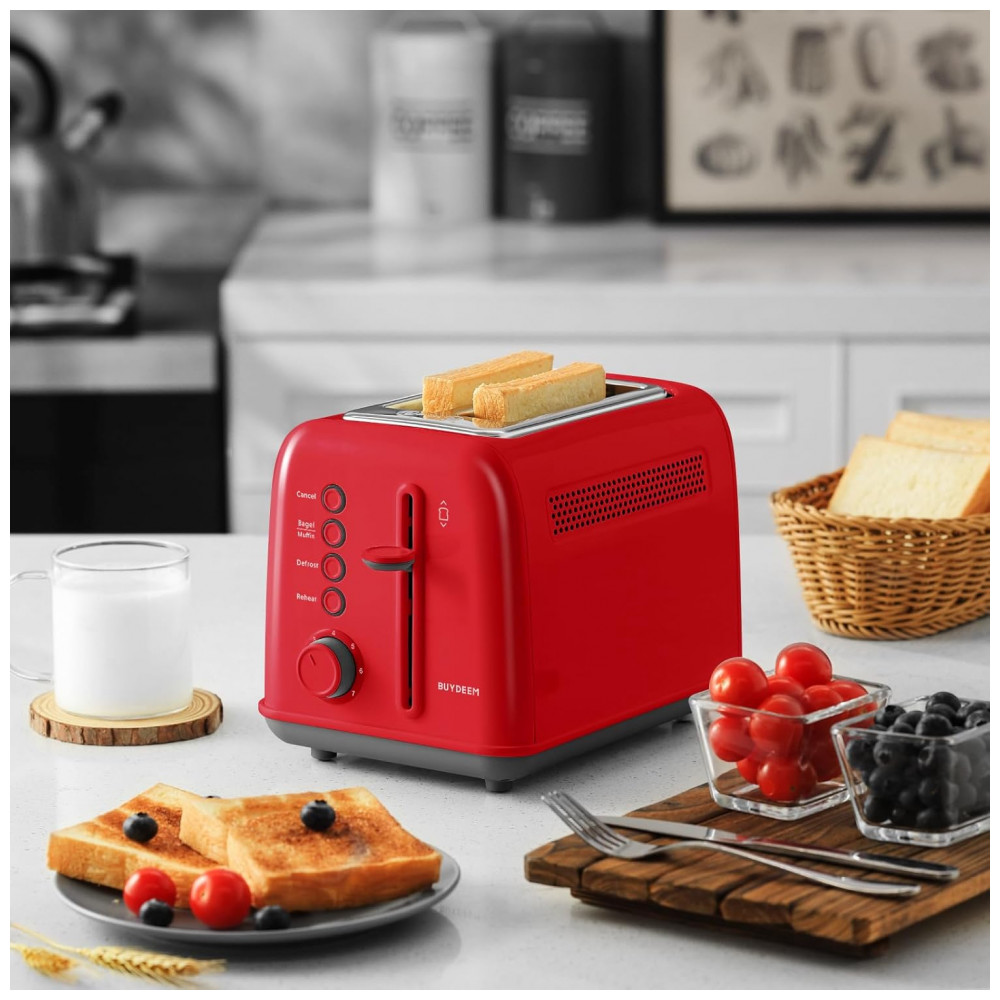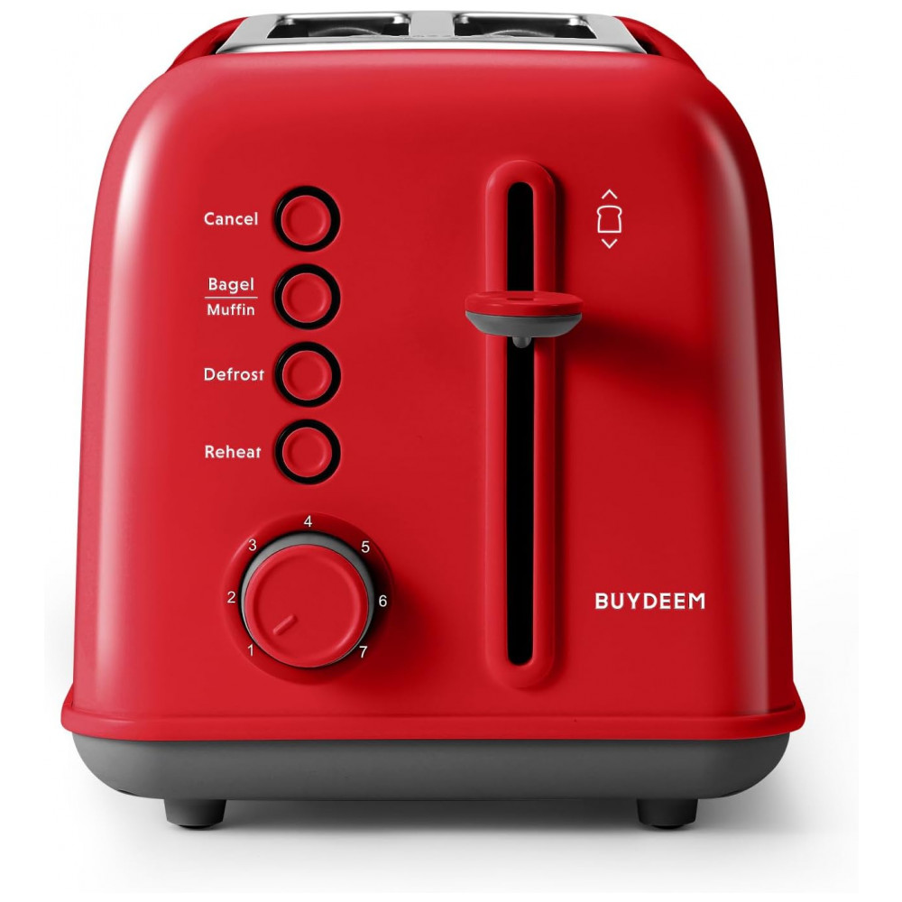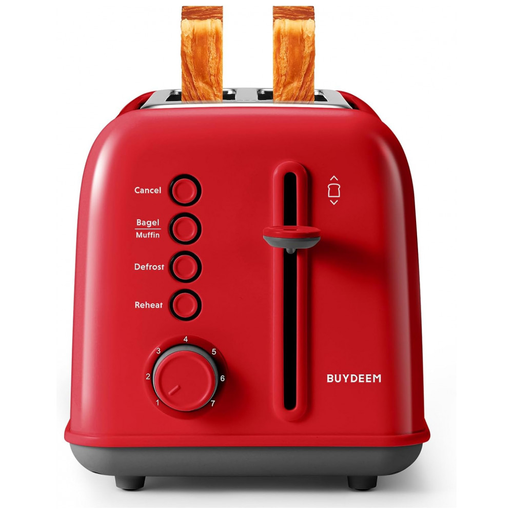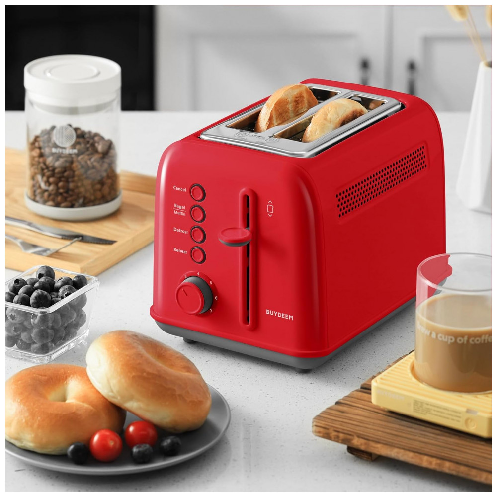 Torradeira BUYDEEM DT620 Vermelha 2 Fatias com Fendas Largas Função Bagel e Muffin Bandeja de Migalhas Removível e 7 Níveis de Tostagem 120V