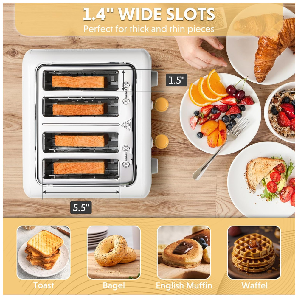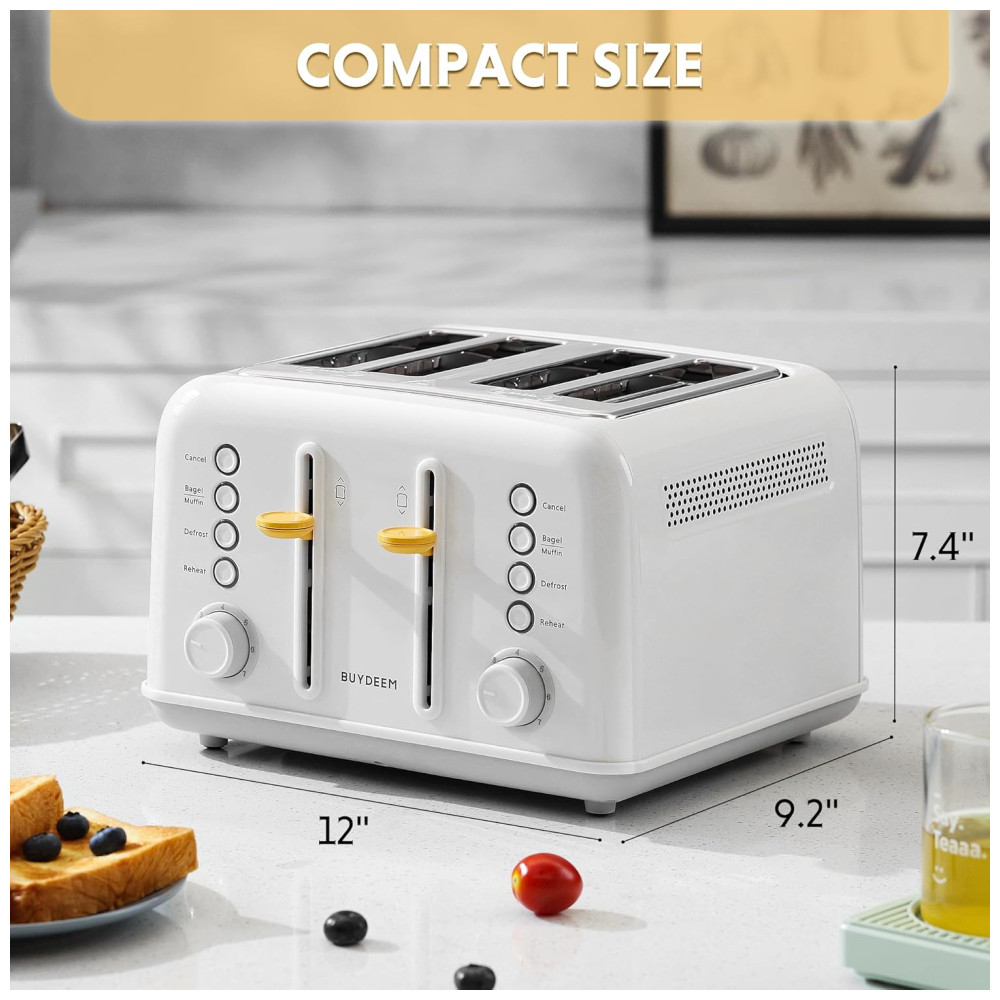 Seja um mestre em tostar bagels e muffins com a função de tostagem Bagel Muffin. Esta torradeira BUYDEEM DT640 possui slots extra largos com guias autocentrantes, perfeitos para diferentes tipos de pães. Com 7 configurações de tostagem, atende a todas as suas necessidades diárias de tostagem. Possui 4 painéis de controle independentes para tostar até 4 fatias simultaneamente, permitindo que cada pessoa tenha seu tostado ao gosto. Além disso, seu design compacto e retro economiza espaço na bancada, com armazenamento de cabo na base. Comece suas manhãs com o café da manhã perfeito!