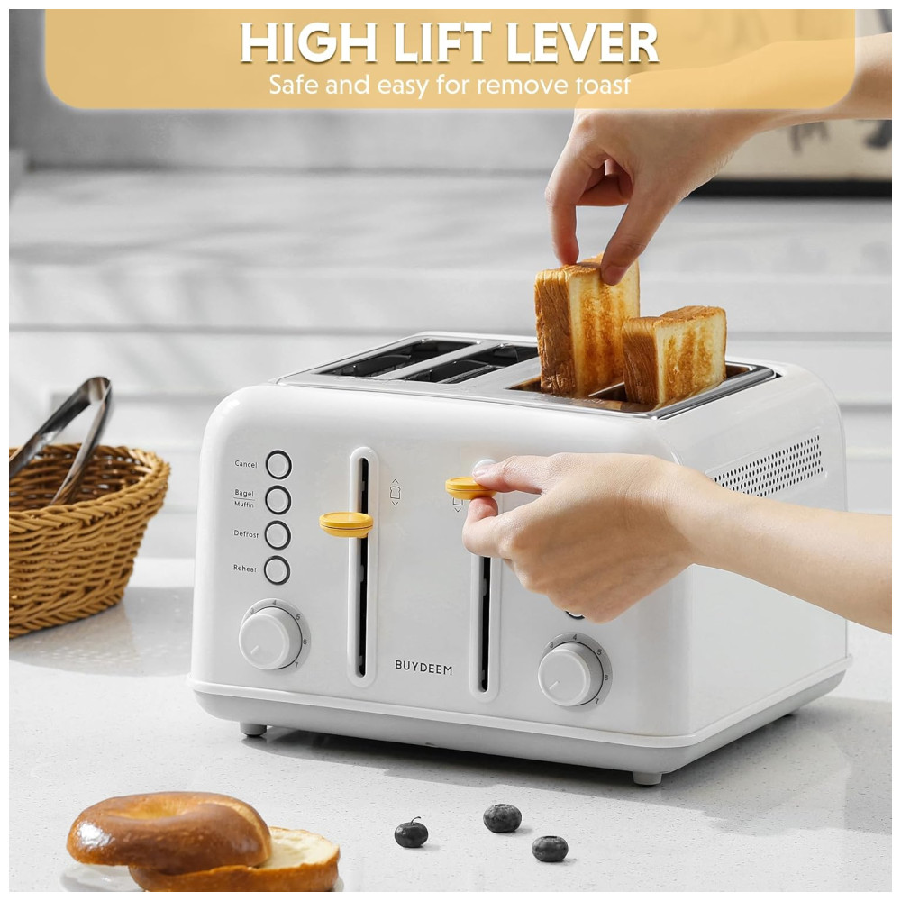 Torradeira BUYDEEM DT640 4 Pães Aberturas Largas Inox Alavanca Alta Função Bagel e Muffin Bandeja Removível 7 Níveis de Tostagem