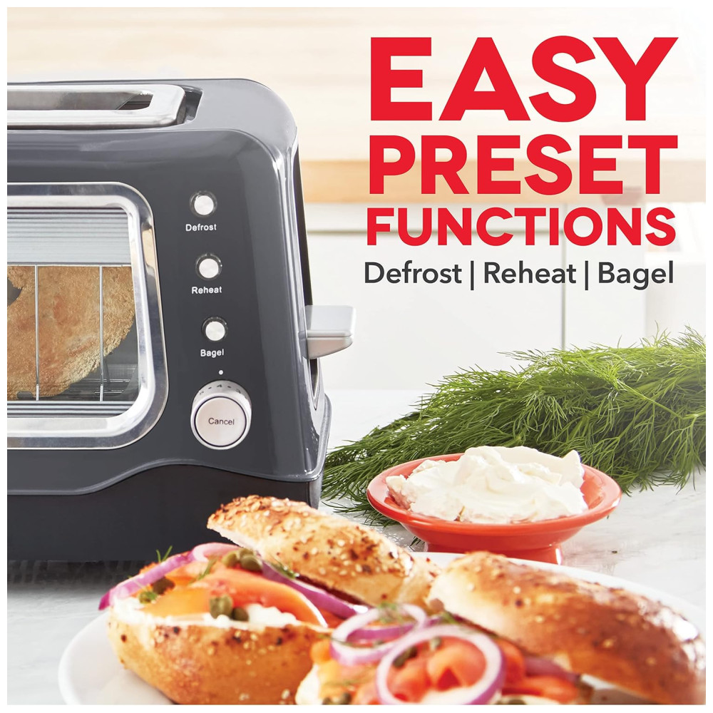 Função bagel Coloque a batata frita perfeita no seu bagel matinal usando a função de bagel de botão. Também controla itens congelados e para acabar com a torrada