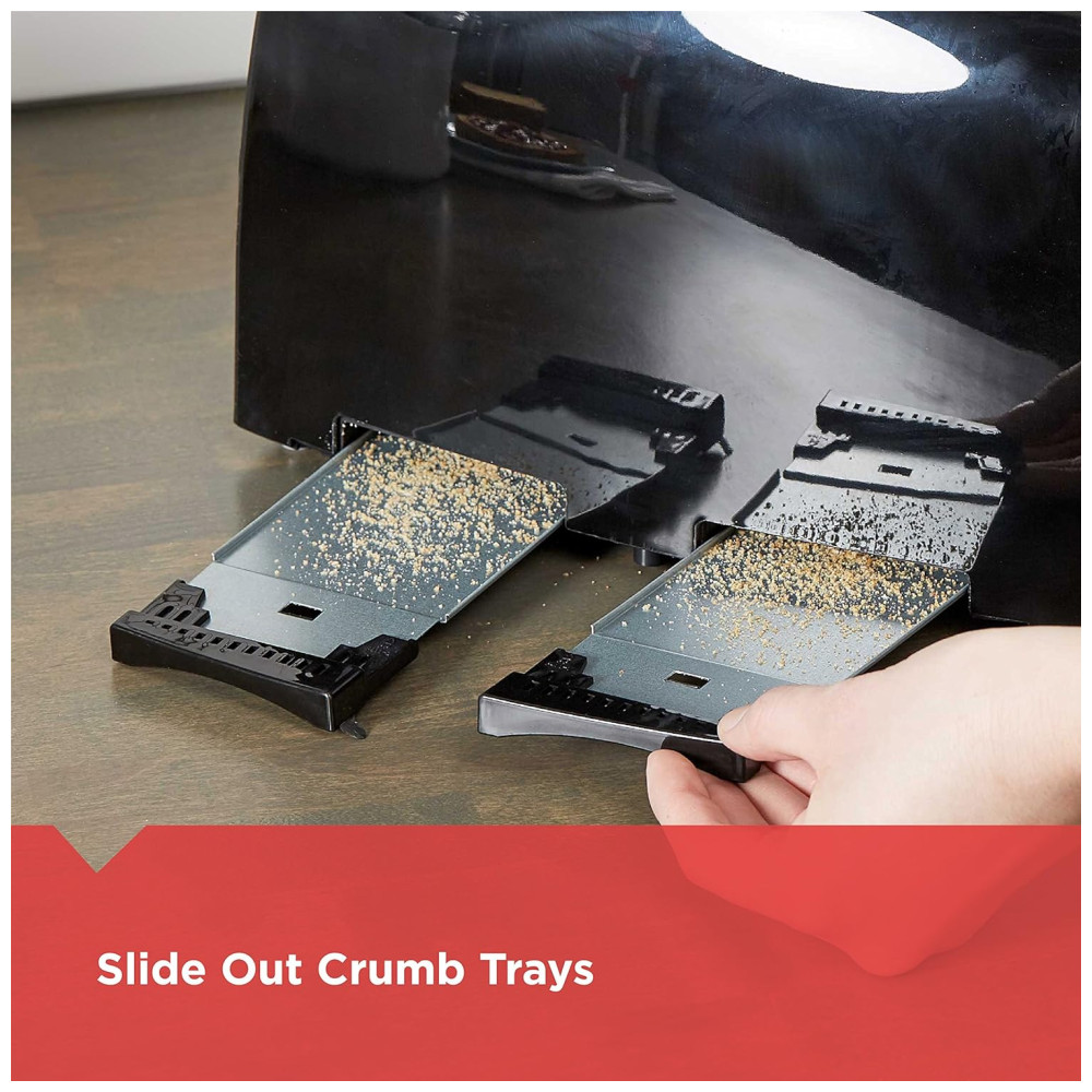 Deslize as bandejas de migalhas Mantenha o balcão limpo e a cozinha cheirando fresca. Bandejas de migalhas duplas permitem que você remova migalhas antes que elas queimem ou estraguem sua cozinha