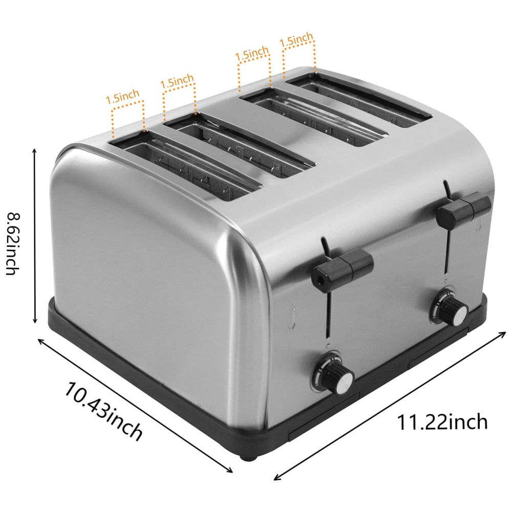 Com a Torradeira Comercial Clivia para 4 fatias, você terá um aparelho com design clássico e simples, perfeito para qualquer estilo de cozinha. Feita em aço inoxidável de alta qualidade, garante aquecimento e resfriamento rápidos. O ajuste de seis níveis de tostagem permite que você tenha controle total sobre o seu pão tostado, garantindo o ponto exato de acordo com sua preferência. Possui 4 slots amplos de 3,81 centímetros de largura, ideal para fatias grossas de pão, muffins, bagels, waffles e outros. Com função de popup automático, limpeza fácil em aço inoxidável e excelente serviço pós-venda da Clivia.