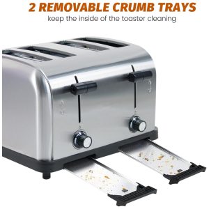 Com a Torradeira Comercial Clivia para 4 fatias, você terá um aparelho com design clássico e simples, perfeito para qualquer estilo de cozinha. Feita em aço inoxidável de alta qualidade, garante aquecimento e resfriamento rápidos. O ajuste de seis níveis de tostagem permite que você tenha controle total sobre o seu pão tostado, garantindo o ponto exato de acordo com sua preferência. Possui 4 slots amplos de 3,81 centímetros de largura, ideal para fatias grossas de pão, muffins, bagels, waffles e outros. Com função de popup automático, limpeza fácil em aço inoxidável e excelente serviço pós-venda da Clivia.