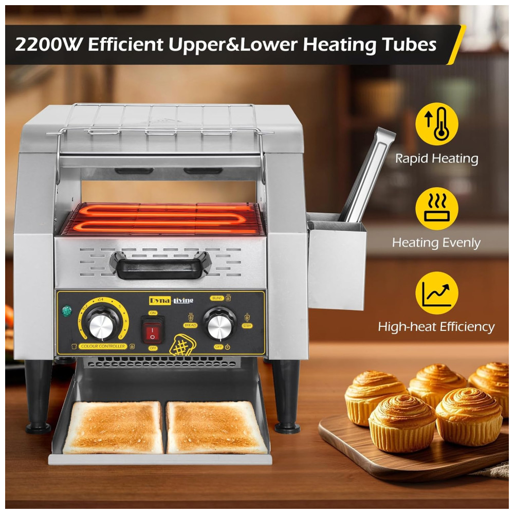 Torradeira Comercial DynaLiving 300 Fatias/Hora Para Restaurante Torradeira de Esteira Comercial em Aço Inoxidável para Uso Pesado 110V 2200W 300 Fa