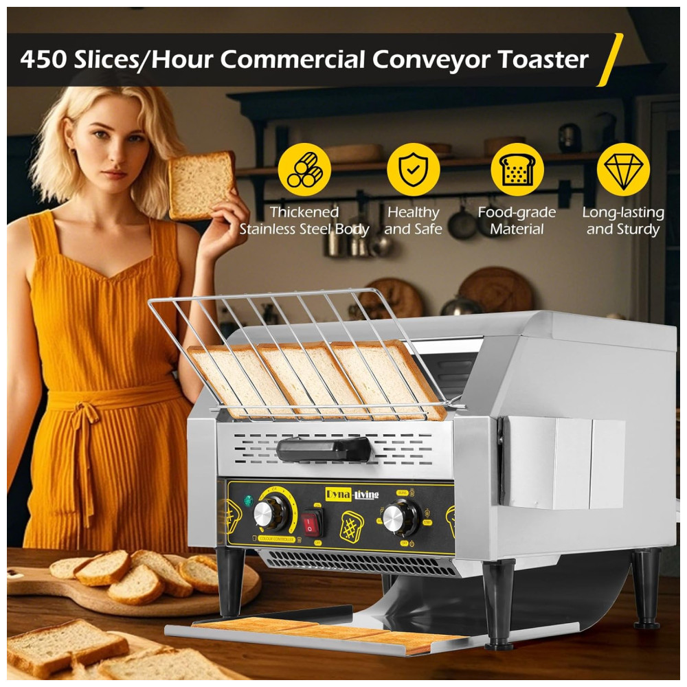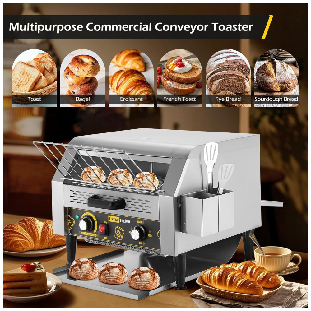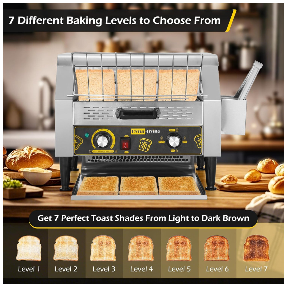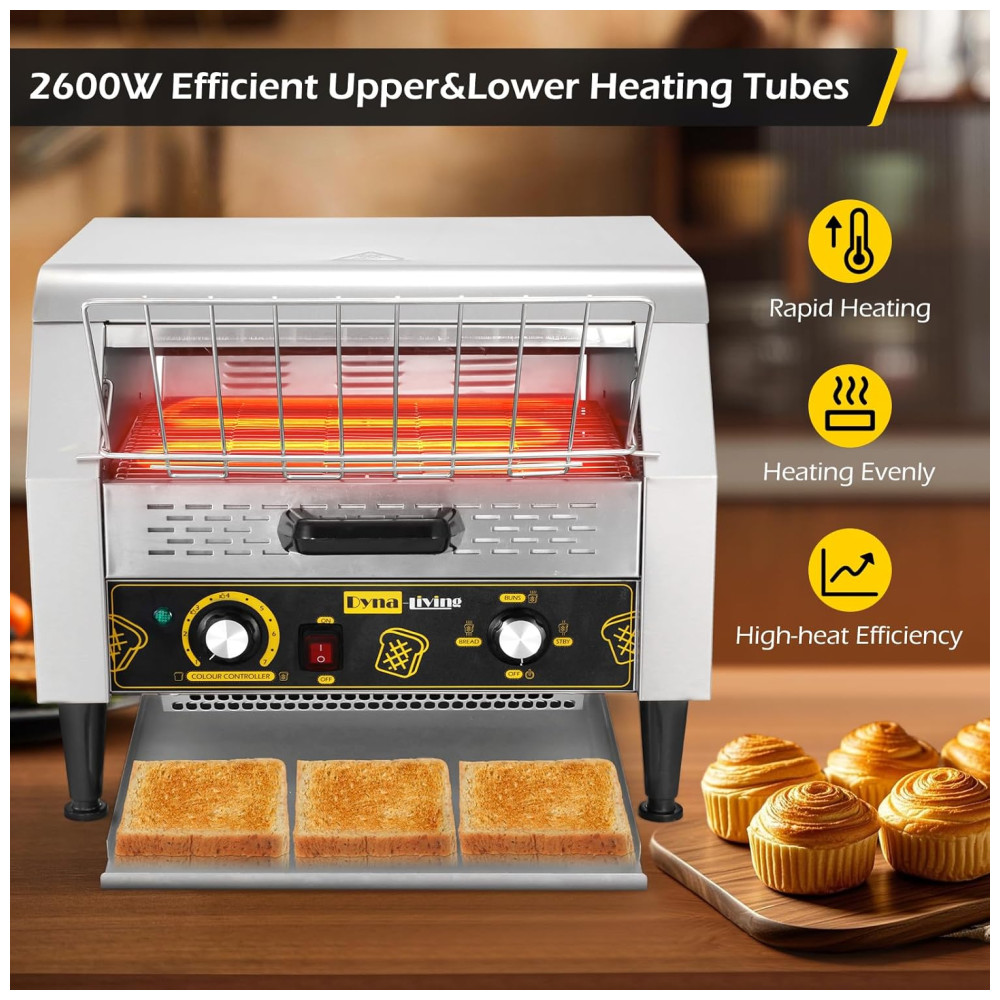 Torradeira Comercial DynaLiving 450 Fatias por Hora para Restaurante Torradeira de Esteira Comercial em Aço Inoxidável Resistente para Restaurante 1
