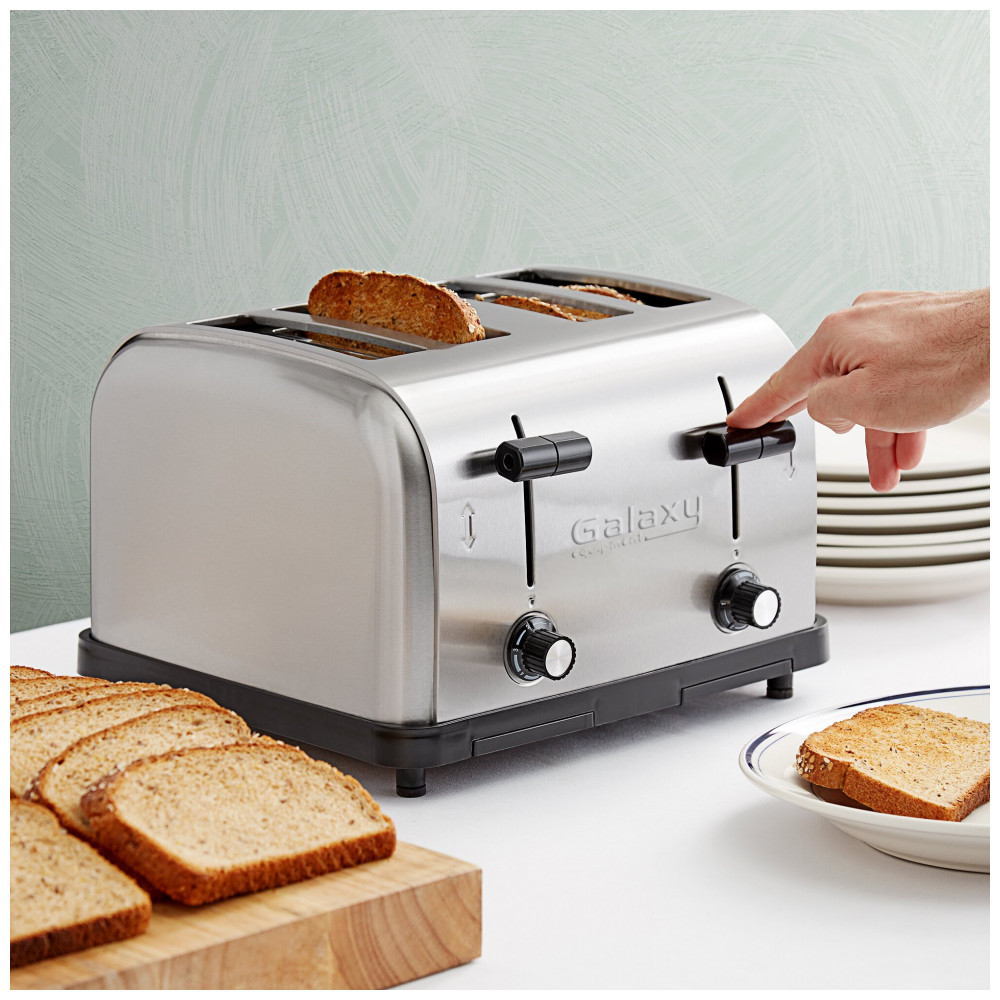 Processe até 225 fatias por hora com essa torradeira comercial versátil da Galaxy. Com slots extralargos de 1 1/2 polegadas, função antitravamento e controle variável de douramento, essa torradeira oferece praticidade e eficiência. Possui 2 bandejas de migalhas removíveis para facilitar a limpeza. Ideal para ambientes comerciais leves, é capaz de tostar até 4 fatias de pão por vez e 225 fatias por hora. Seus slots largos permitem acomodar produtos mais espessos, como pão de forma e bagels, garantindo versatilidade na cozinha. Adapte o nível de crocância desejado e assegure um tostado uniforme e consistente. Perfeita para cafeterias, buffets e padarias, especialmente durante os horários de pico da manhã.