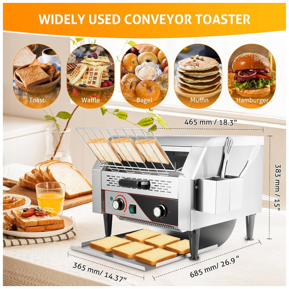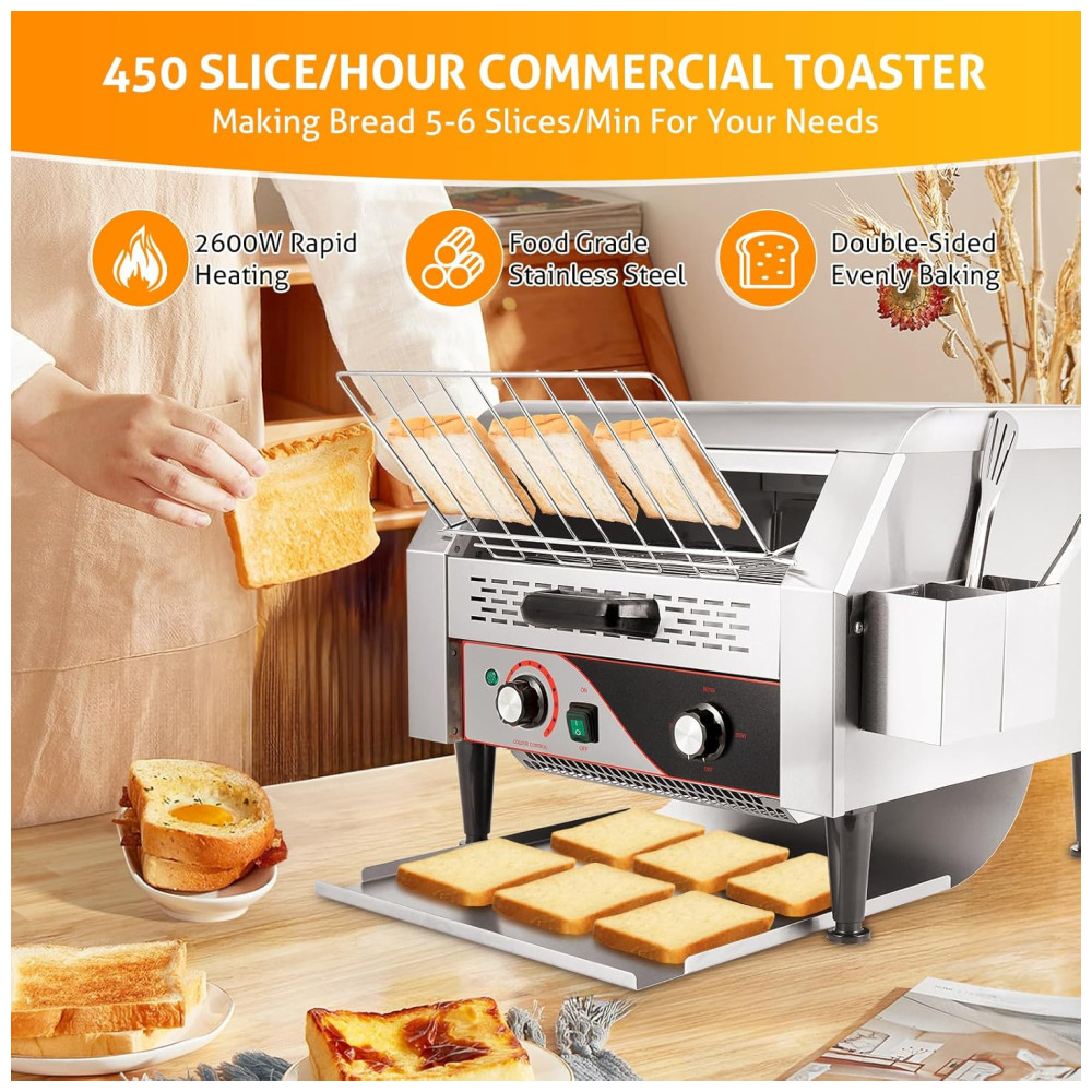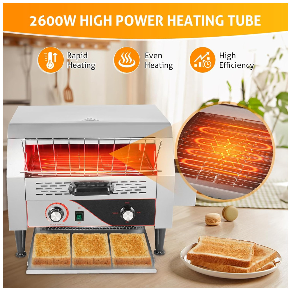 Torradeira Comercial WICHEMI de Correia 450 Fatias/Hora 2600W Aço Inoxidável Controle Independente de Temperatura 3 Modos 7 Velocidades