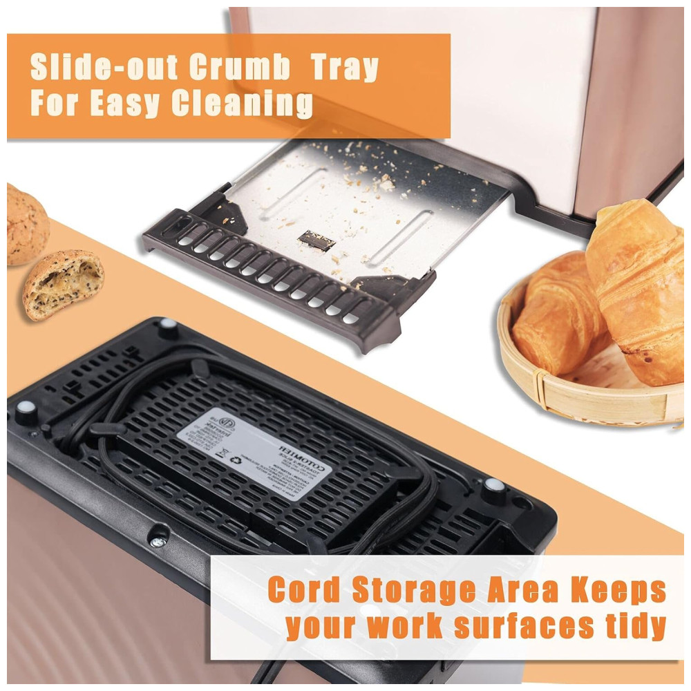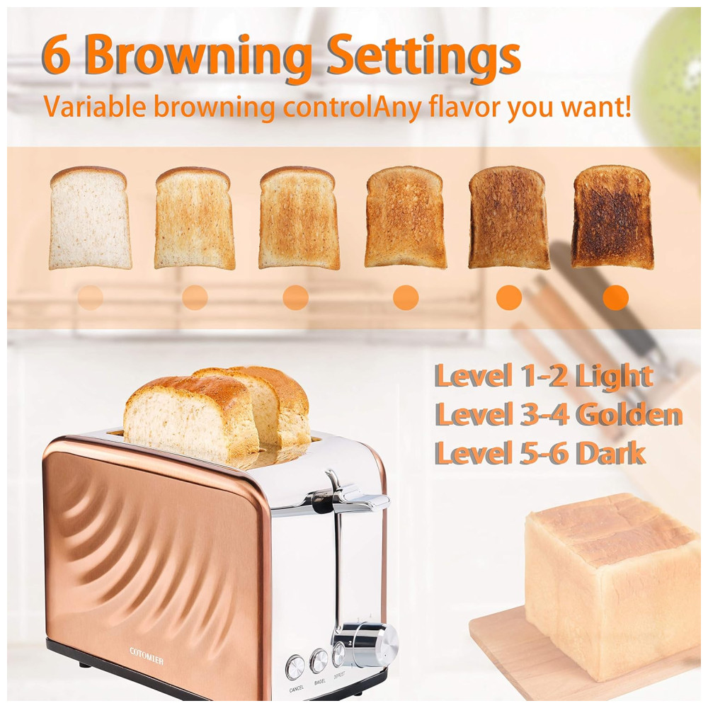 Torradeira de 2 Fatias com 6 Níveis de Tostagem 825W Dourada 110v COTOMIER Dorado