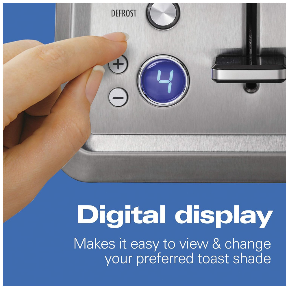 Tela digital O display digital da torradeira de aço inoxidável mostra a configuração de tonalidade da torrada selecionada em um relance.