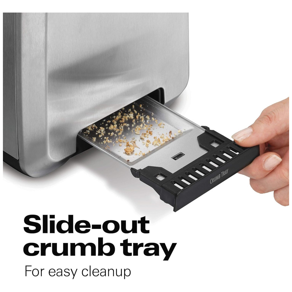 Bandeja de migalhas A torradeira de 2 fatias possui uma bandeja de migalhas conveniente que desliza facilmente para fora, tornando a limpeza simples