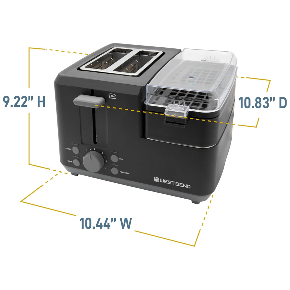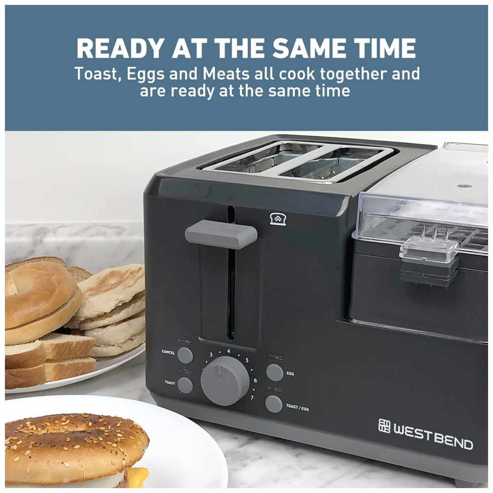 Torradeira de 2 Fatias Multifuncional com 7 Níveis e Função Ovos 1200W 110v WEST BEND 78500 Preto