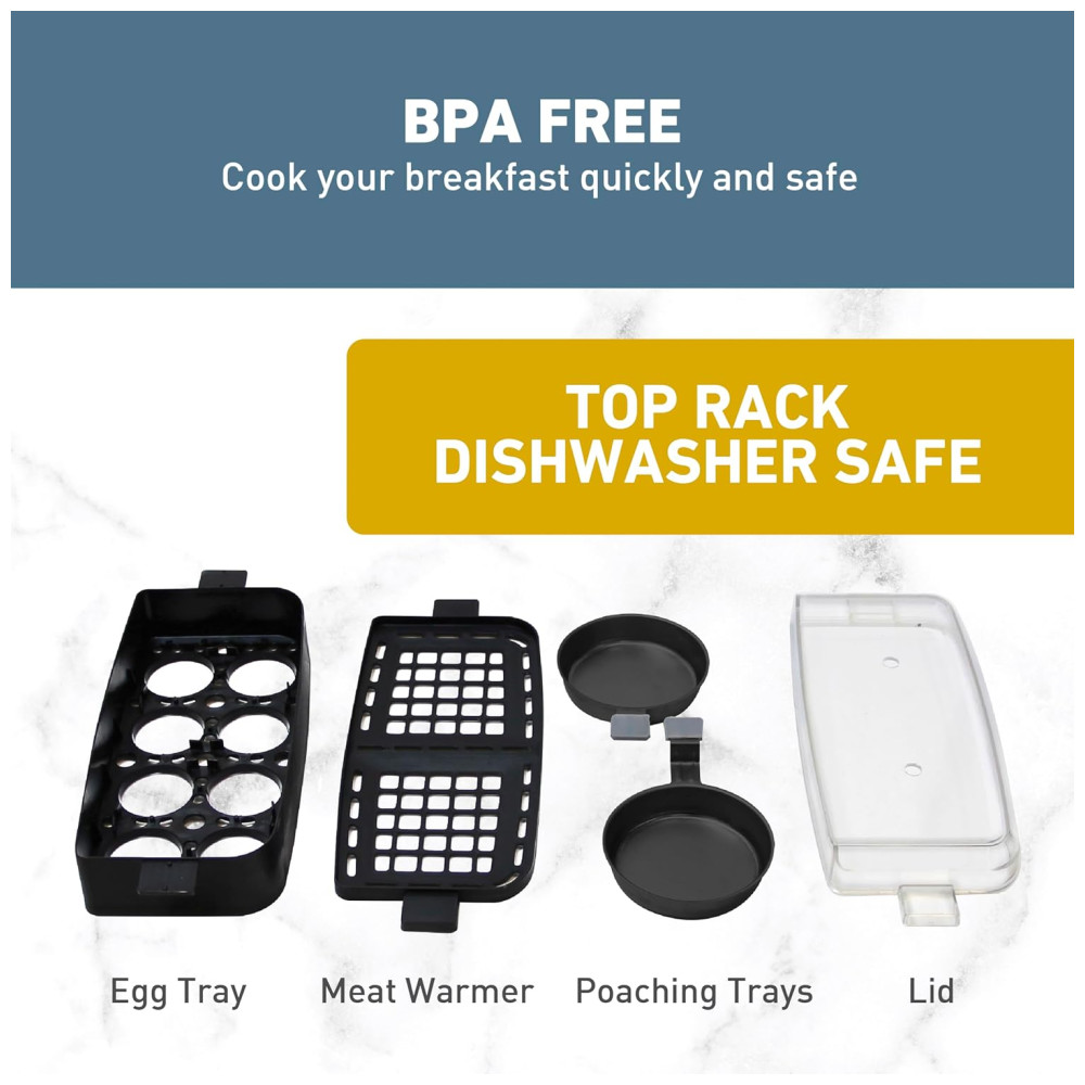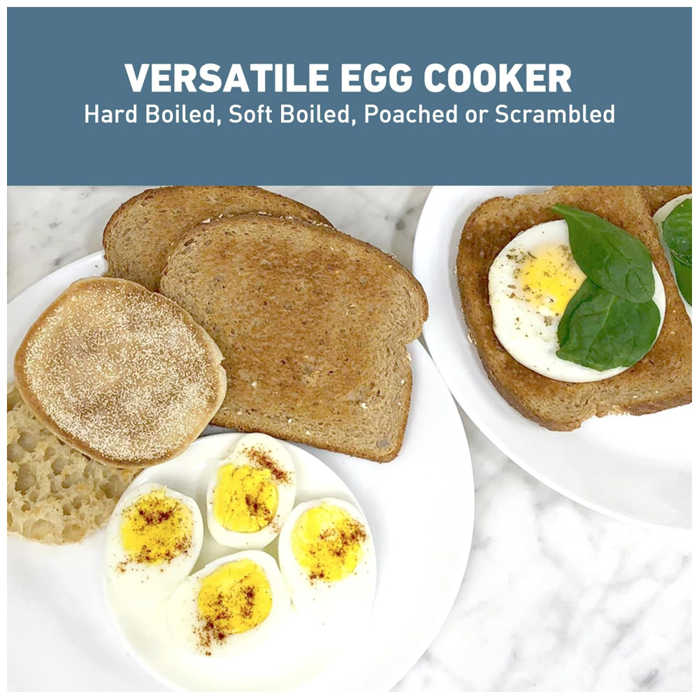 FOGÃO DE OVOS Ferva até 8 ovos moles ou duros de uma vez ou escalde facilmente ou mexa dois ovos em cerca de 4 minutos