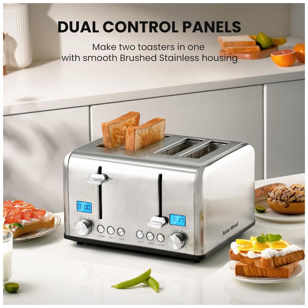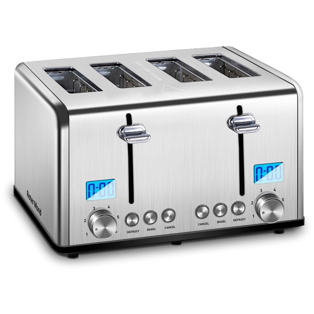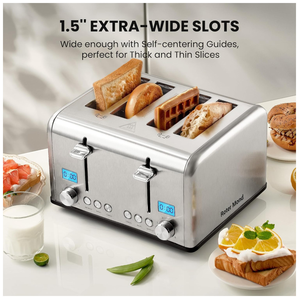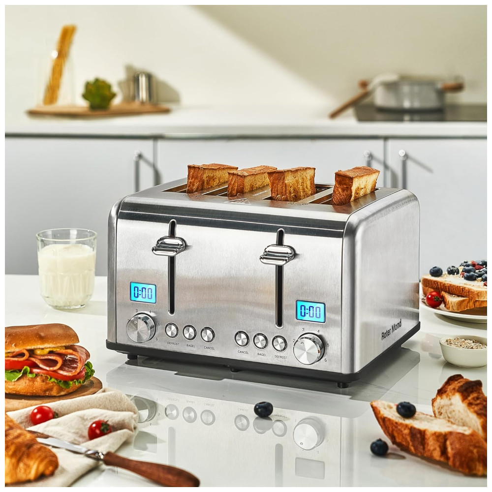 Torradeira de 4 fatias em Aço Inoxidável com Contador Regressivo e Funções Bagel Descongelar e Cancelar – 1650WRoter Mond