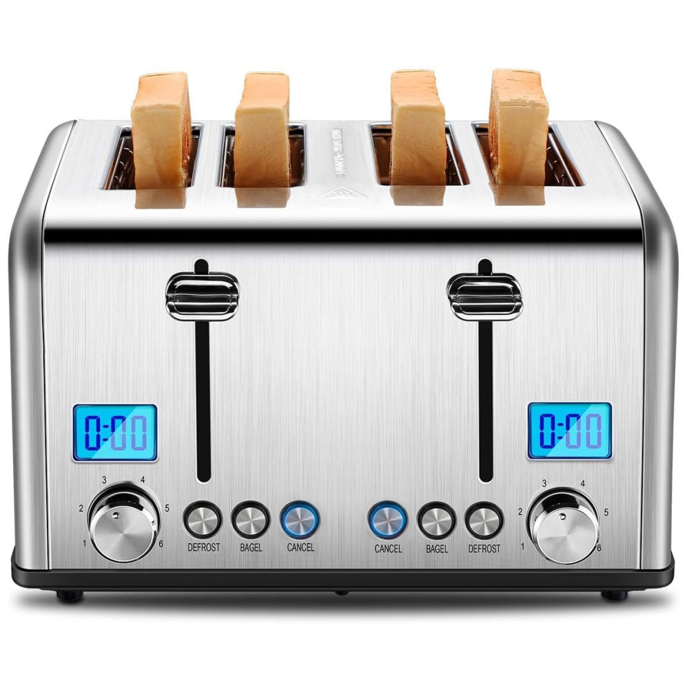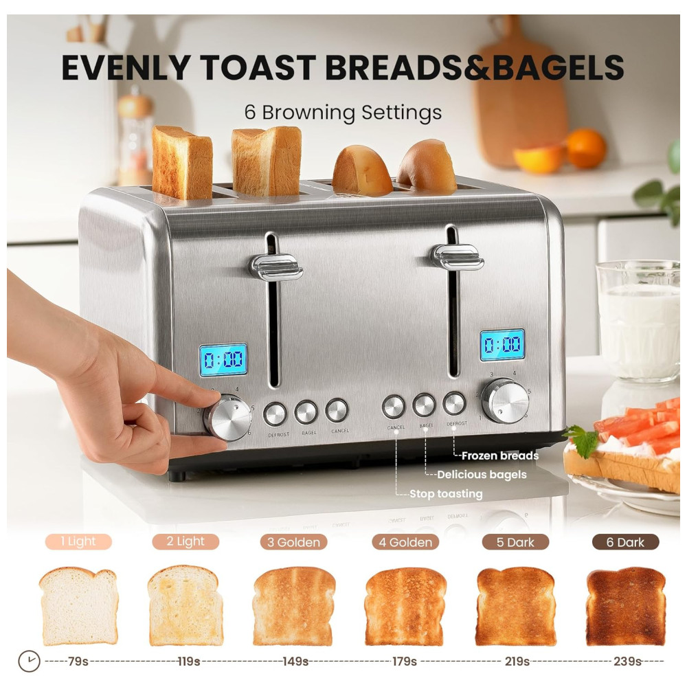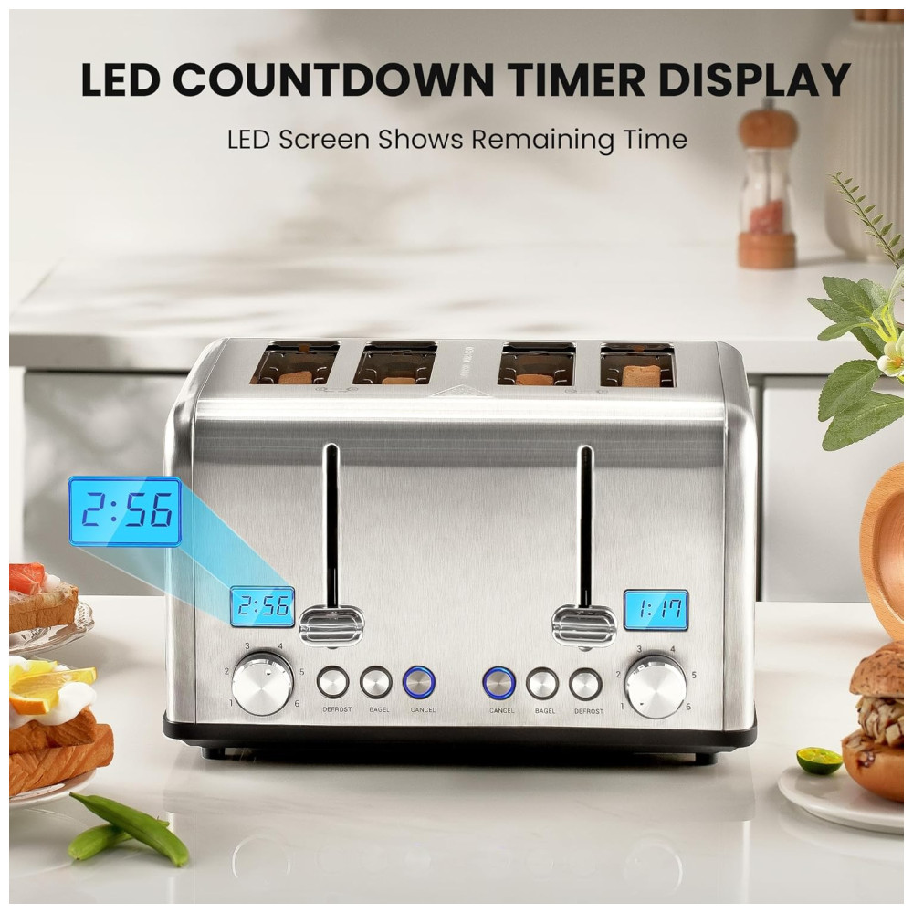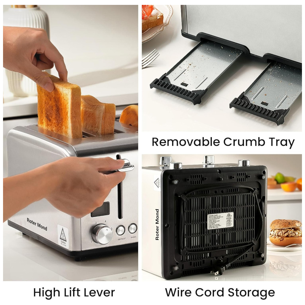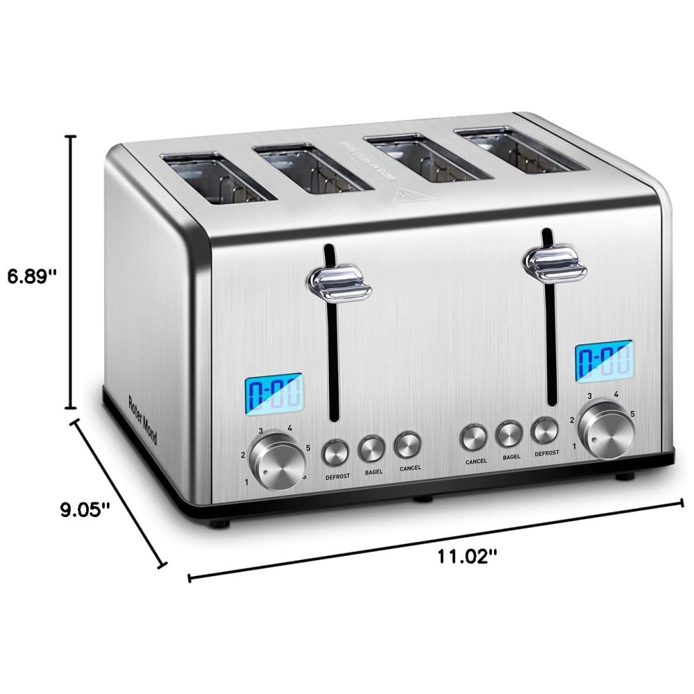 Torradeira de 4 fatias em Aço Inoxidável com Contador Regressivo e Funções Bagel Descongelar e Cancelar – 1650WRoter Mond