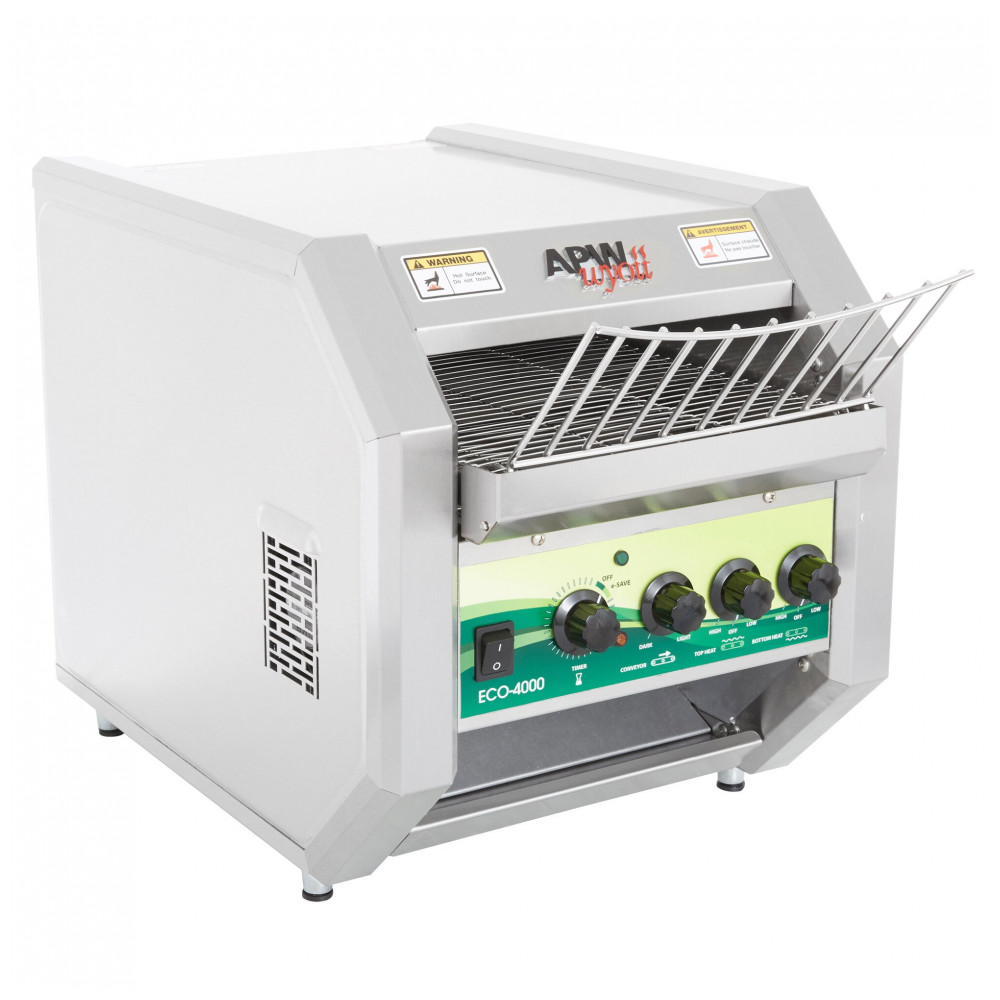 Com capacidade de até 350 fatias de pão por hora, esta torradeira de esteira oferece uma correia transportadora que economiza energia, proporcionando até 365 de economia ao ano em comparação com torradeiras convencionais de padrão. Ideal para uso comercial.
