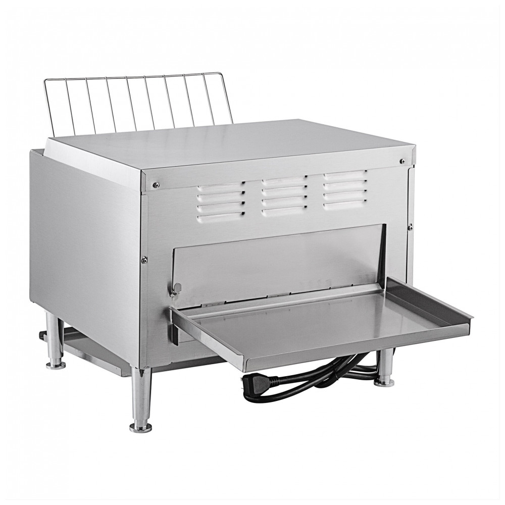 A Torradeira de Esteira Avantco T3600D é capaz de tostar até 1200 fatias de pão ou bagels por hora, com capacidade para três fatias lado a lado em uma esteira. Sua abertura de 3 polegadas permite a variedade de pães, bagels e muffins. Um guia frontal ajuda a carregar os alimentos com segurança. Controle de velocidade da esteira totalmente ajustável e controle de calor independente de 8 configurações para obter a torrada perfeita. Exterior em aço inoxidável resistente com pernas e botões de controle em aço inoxidável. Além disso, sua esteira de 14 12 polegadas de largura permite a colocação de 3 fatias lado a lado, enquanto sua abertura de 3 polegadas acomoda uma variedade de produtos. É possível torrar facilmente pão, bagels, muffins ingleses ou pãezinhos conforme a solicitação do cliente. Um guia frontal ajuda no carregamento do produto com segurança, garantindo que cada fatia seja puxada diretamente para dentro da unidade para uma torra eficiente e consistente. O design único do elemento ajuda a produzir uma torrada perfeita sem ressecar o produto. Esta unidade em particular possui 8 opções de velocidade da esteira, fáceis de ajustar com botões de controle robustos. Esse controle permite que o operador selecione quanto tempo o pão é torrado, determinando a coloração e crocância final. Além disso, os controles independentes são incorporados para os elementos superior e inferior. Cada controle inclui ajustes de 1 a 6 e fornece ao operador controle adicional para resultados de torrada personalizados e fáceis. Os controles individuais superior e inferior permitem a torra de uma variedade de produtos, como pães, bagels e muffins. Feita de aço inoxidável, esta torradeira possui saídas frontal e traseira que são fáceis de acoplar e remover conforme necessário. Ela fica apoiada em pernas ajustáveis de aço inoxidável, garantindo que a bancada abaixo seja acessível para fins de limpeza. Esta torradeira de esteira horizontal requer uma conexão elétrica de 208V para operação e possui uma saída de 3600W. Para versatilidade, esta torradeira pode dispensar o produto pela frente ou pela traseira, nas calhas incluídas. Além disso, possui 3 slots para acomodar grandes quantidades de seus alimentos mais populares, desde pão fatiado tradicional até bagels e torradas texas. A dispensa do produto pela parte traseira permite a versatilidade de passagem da cozinha para a área de atendimento, enquanto a dispensa do produto pela parte frontal reduz a pegada na bancada da unidade, permitindo até que os usuários preparem o produto para reduzir o custo com mão de obra.