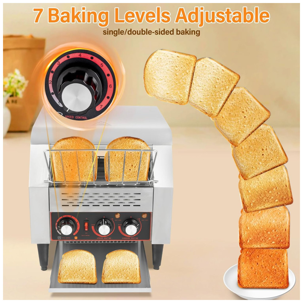 Torradeira de Esteira Comercial 300 Fatias/Hora Torradora de Pão Dupla Face 7 Velocidades Ajustáveis Forno TorradeiraCUBELLIN