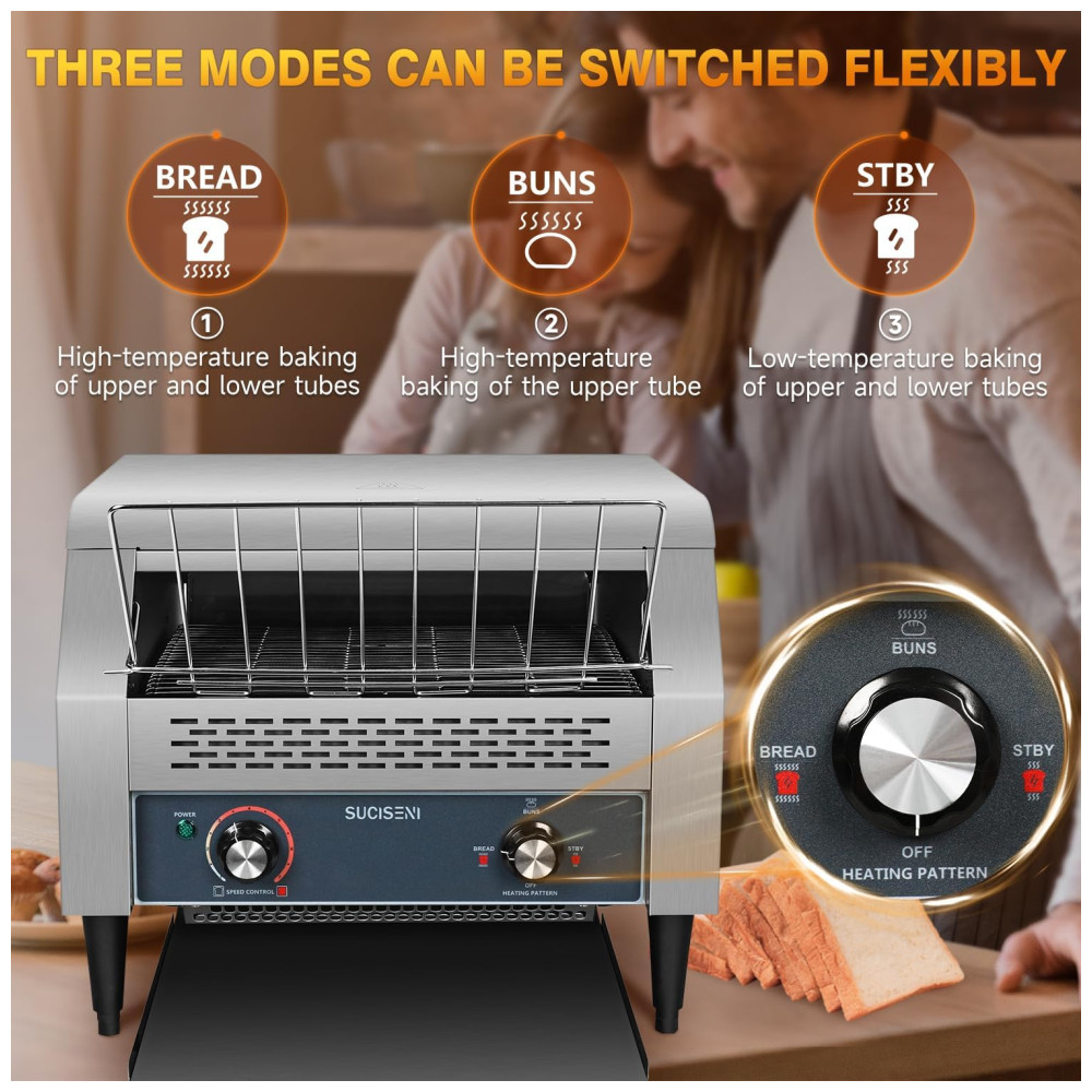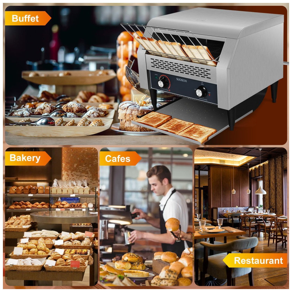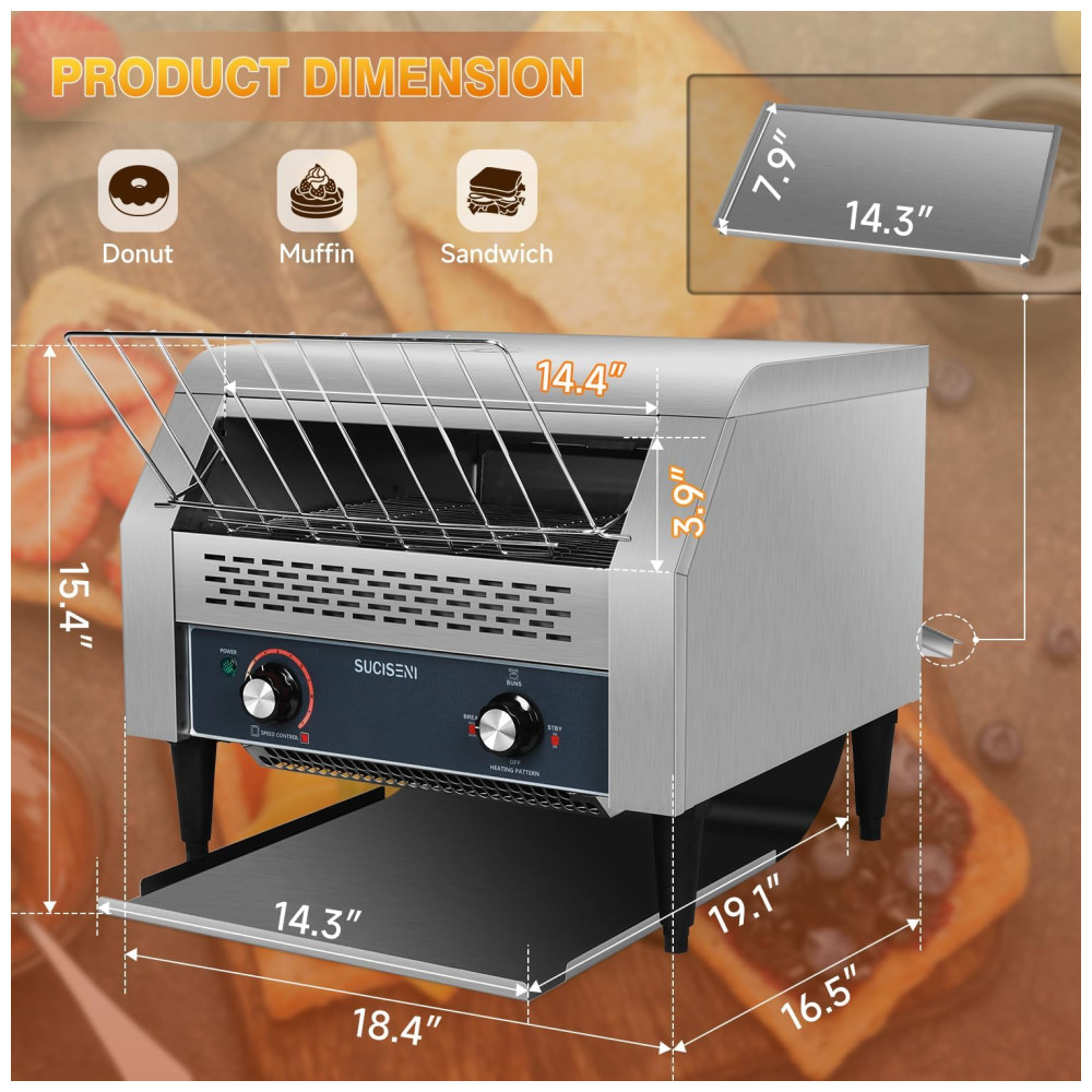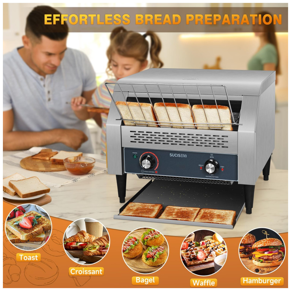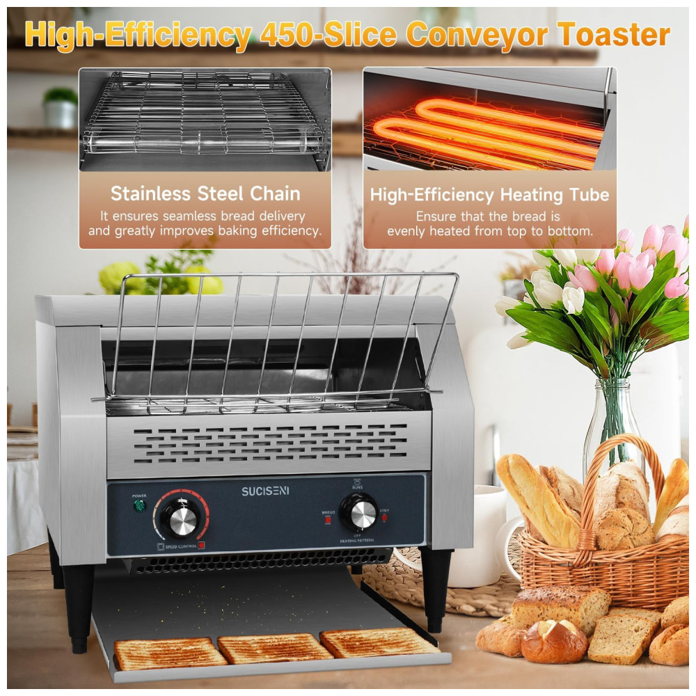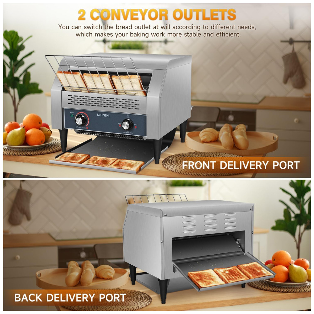 Torradeira de Esteira Comercial 450 Fatias/Hora em Aço Inoxidável 2600W – Ideal para Padarias Restaurantes e CafeteriasSUCISENI