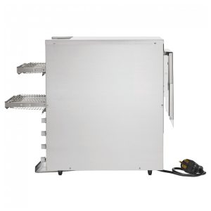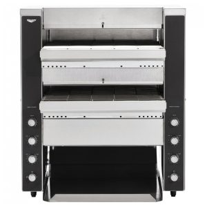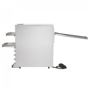 As resistências de quartzo eficientes em energia proporcionam um cozimento rápido e uniforme por convecção forçada. Com esteiras e sistema de acionamento livre de manutenção. O modo de espera reduz o consumo de energia em até 75% durante os períodos de baixa demanda. Os controles de velocidade variável e de calor superior e inferior permitem resultados precisos. Abertura ajustável para torrar até 1.100 fatias por hora. Ideal para estabelecimentos comerciais. Voltagem de 208V e potência de 4950W.