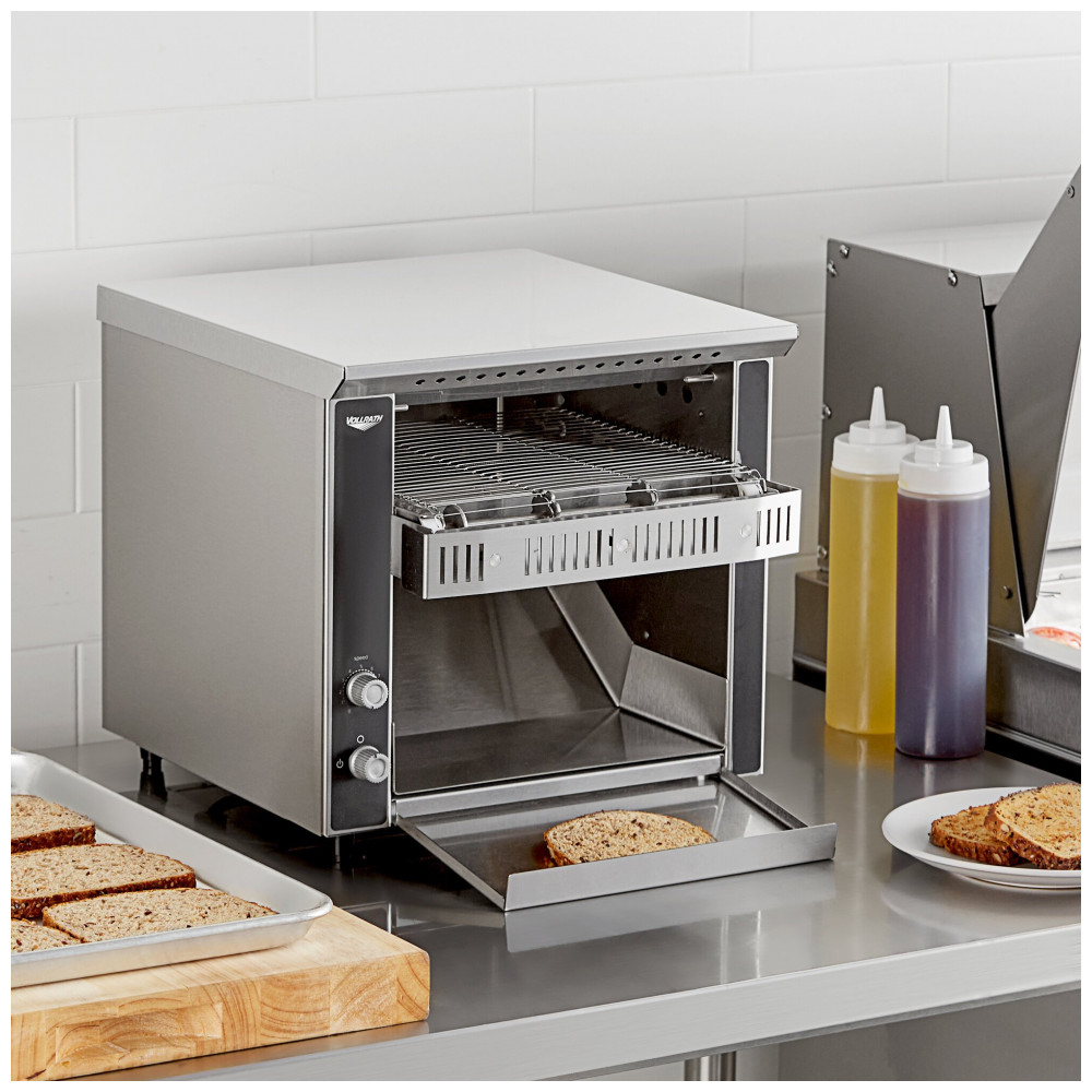 A Torradeira de Esteira Vollrath CT2H120250 JT1H é a escolha ideal para aplicações de torragem de médio volume. Com uma abertura maior, é perfeita para pães tradicionais, bagels ou até mesmo torradas ‘Texas toast’. Com capacidade de torrar até 250 fatias por hora, é perfeita para acompanhar o ritmo de buffets de café da manhã movimentados, cafeterias ou cozinhas de restaurantes. Esta torradeira de esteira apresenta uma esteira larga e 2 fatias de largura, maior que o padrão da indústria, para mais capacidade e melhores resultados. Possui um sistema de acionamento livre de manutenção, usando uma corrente de acionamento em aço inoxidável que não requer lubrificação regular. Feita de aço inoxidável resistente à corrosão e aço aluminizado, possui pernas ajustáveis para manter a estabilidade em superfícies irregulares. Para torragem uniforme e eficiência energética, utiliza torragem por convecção forçada com elementos de aquecimento de quartzo eficientes. Conta com modo de espera que pode reduzir o consumo de energia em até 75% em períodos de baixa demanda, permitindo que o equipamento retorne rapidamente ao funcionamento total.