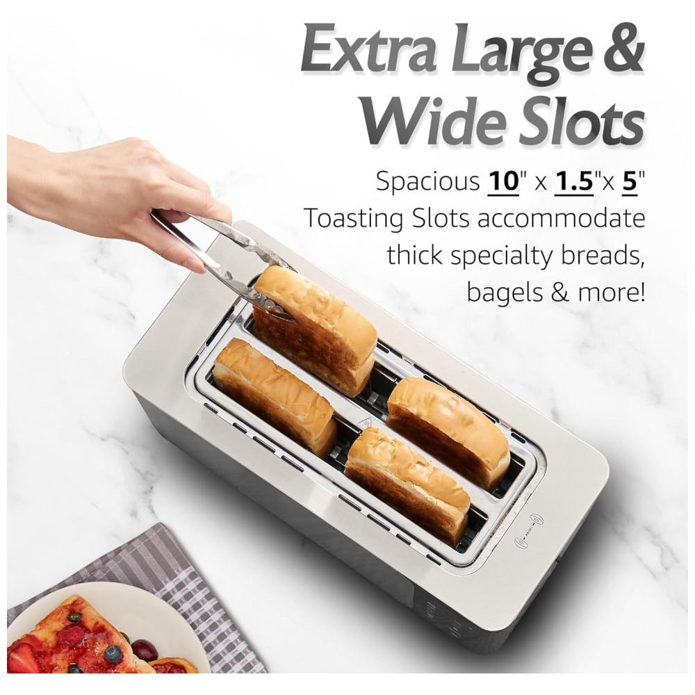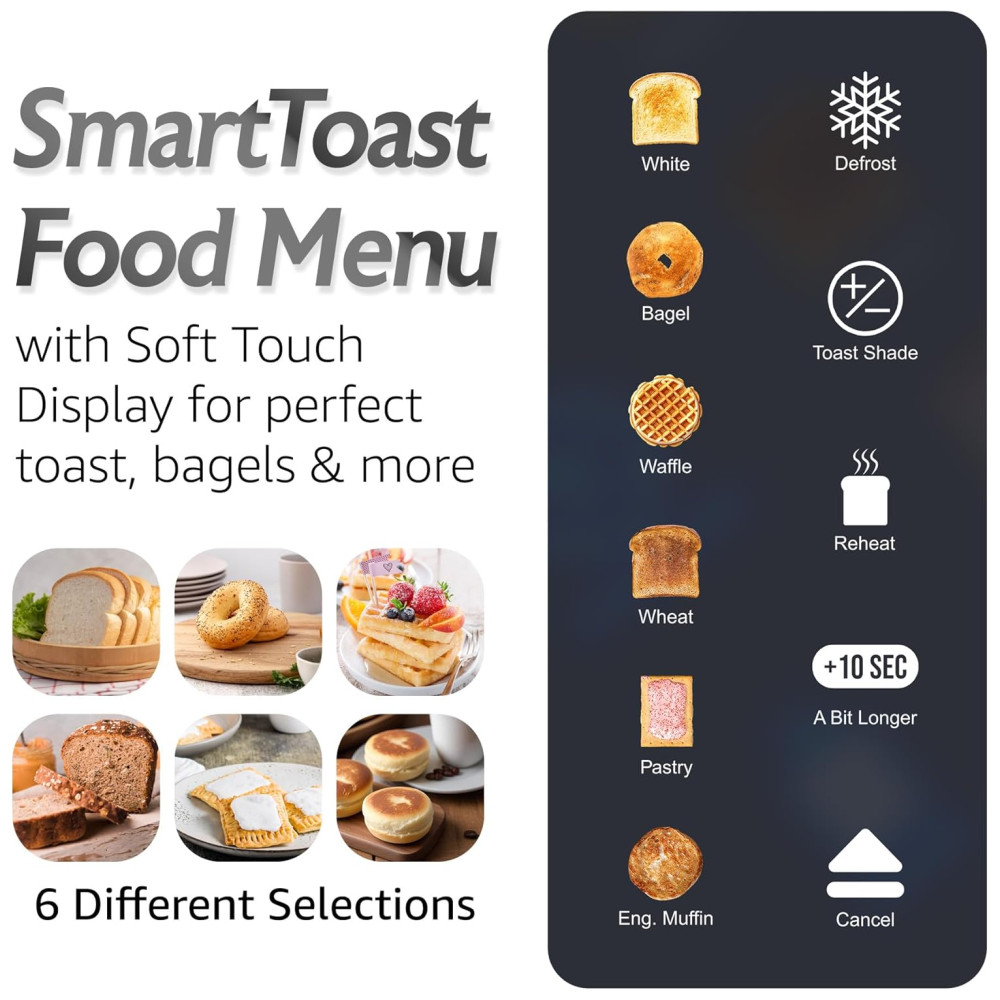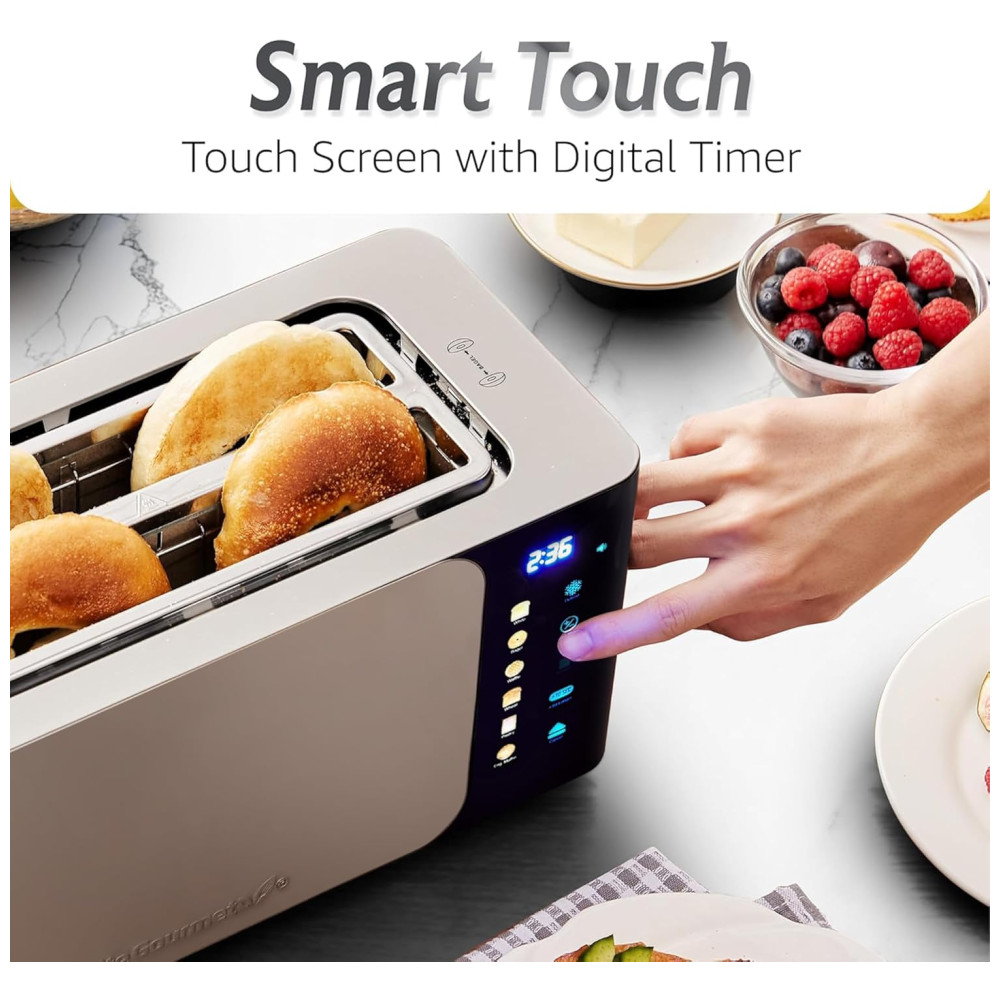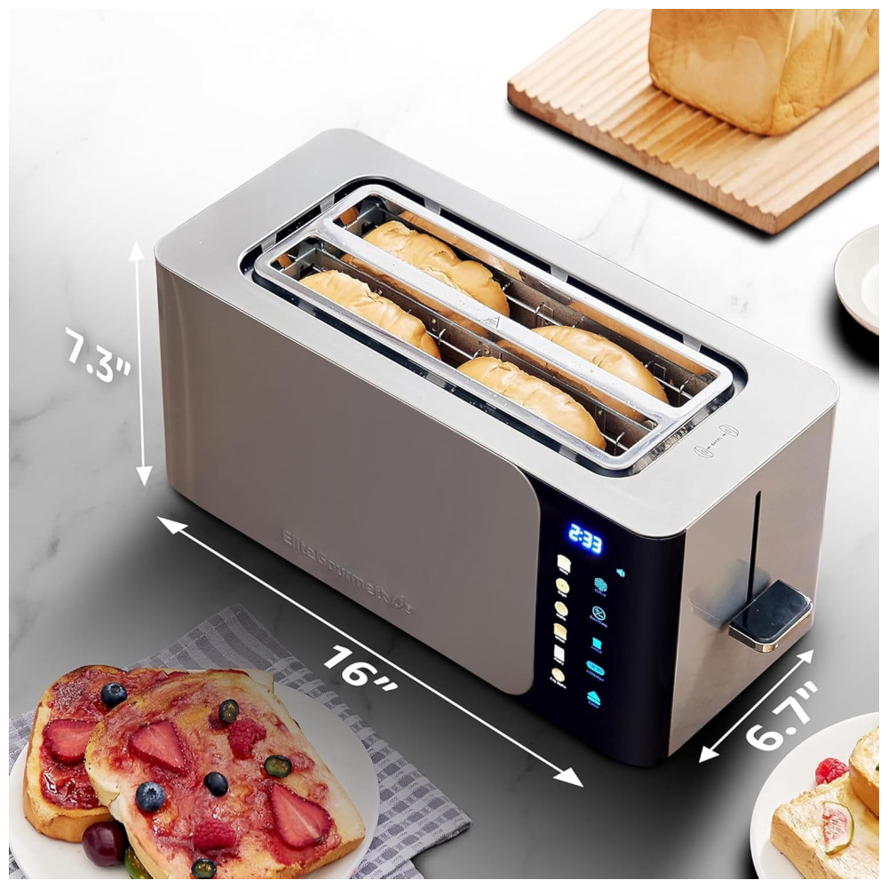 Torradeira Digital Elite Gourmet ECT5924D SmartToast com 4 Fatias Longas 15 Polegadas Função Bagel Tela de Toque LED Temporizador Regressivo 6 T