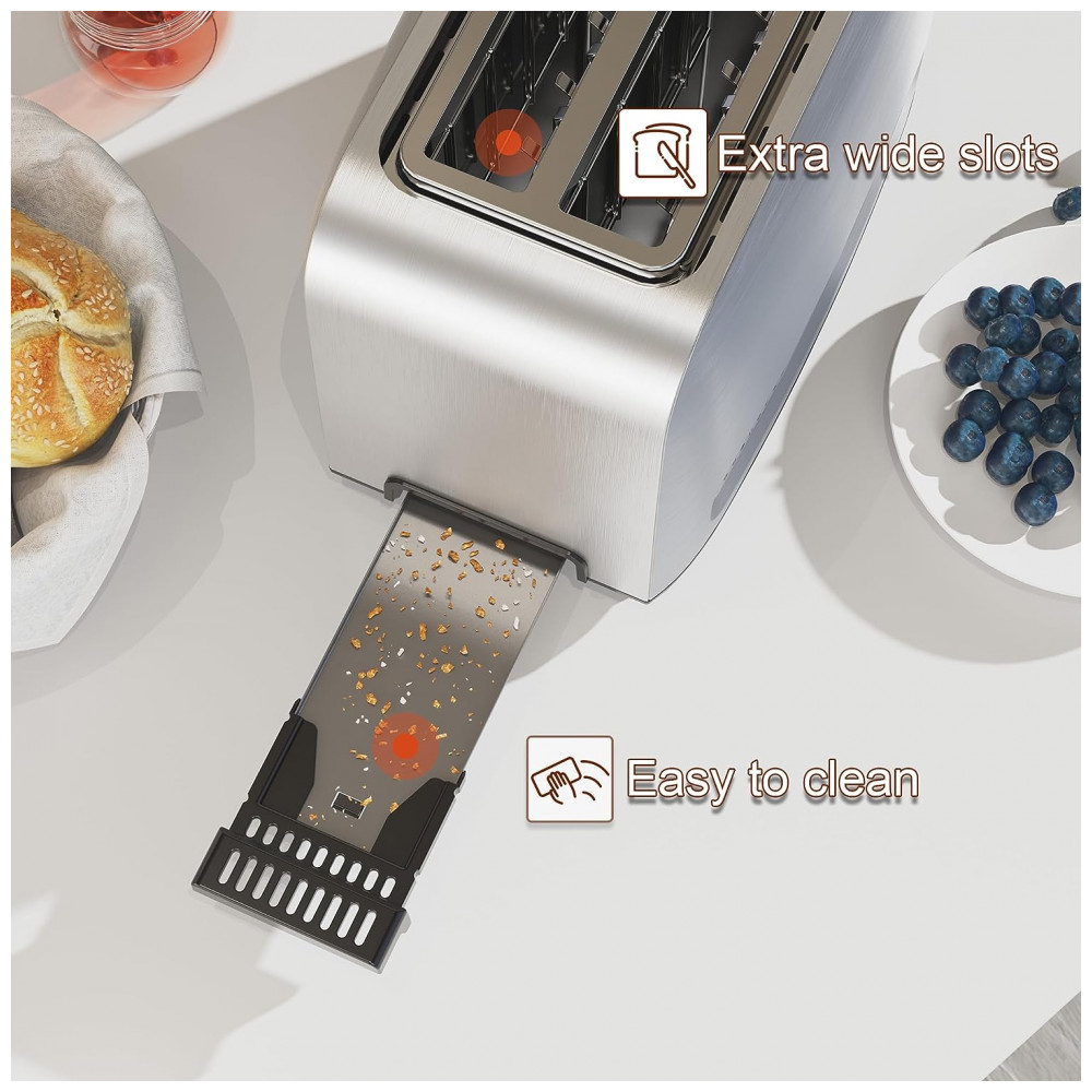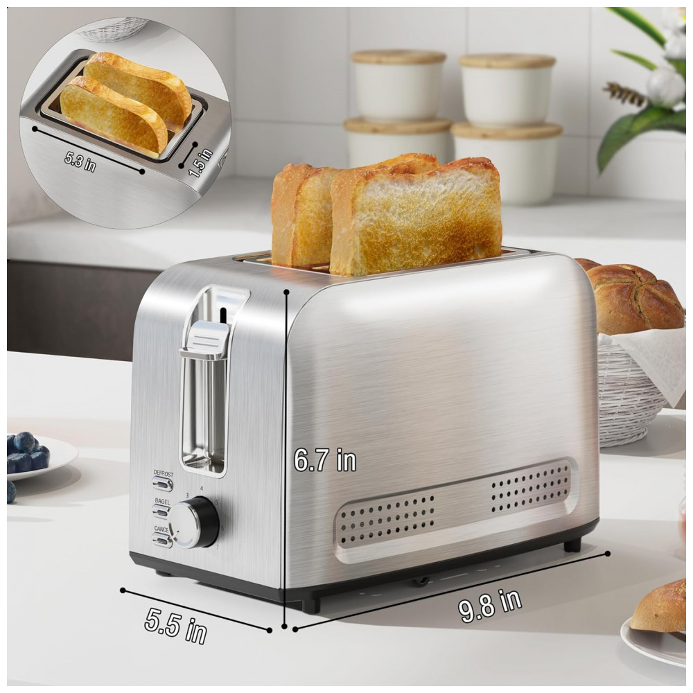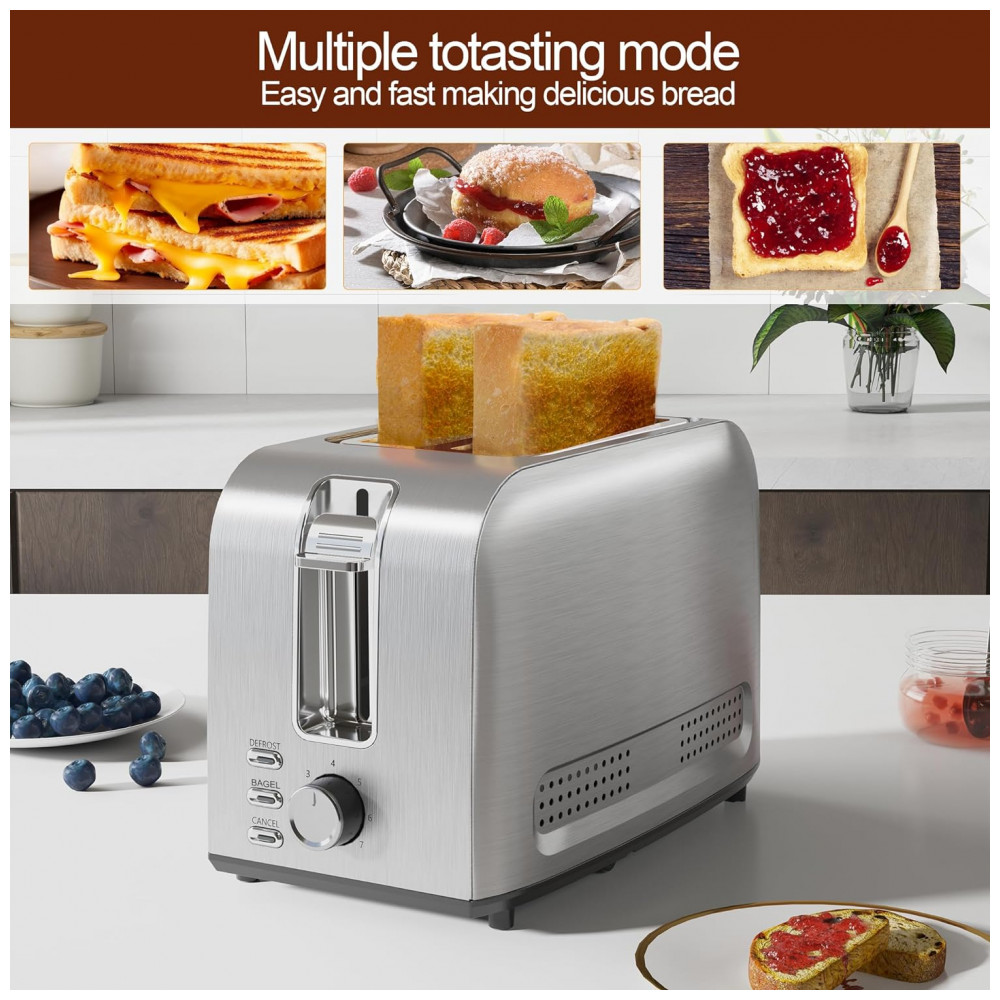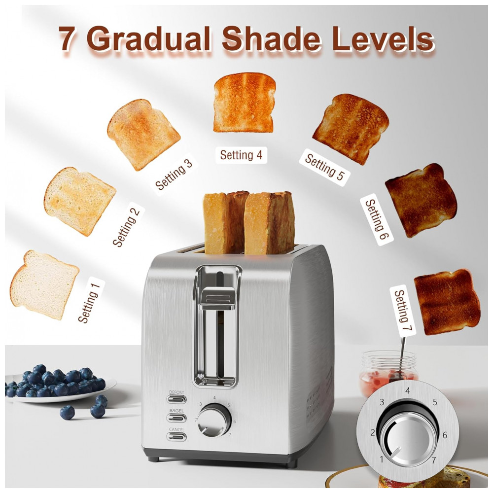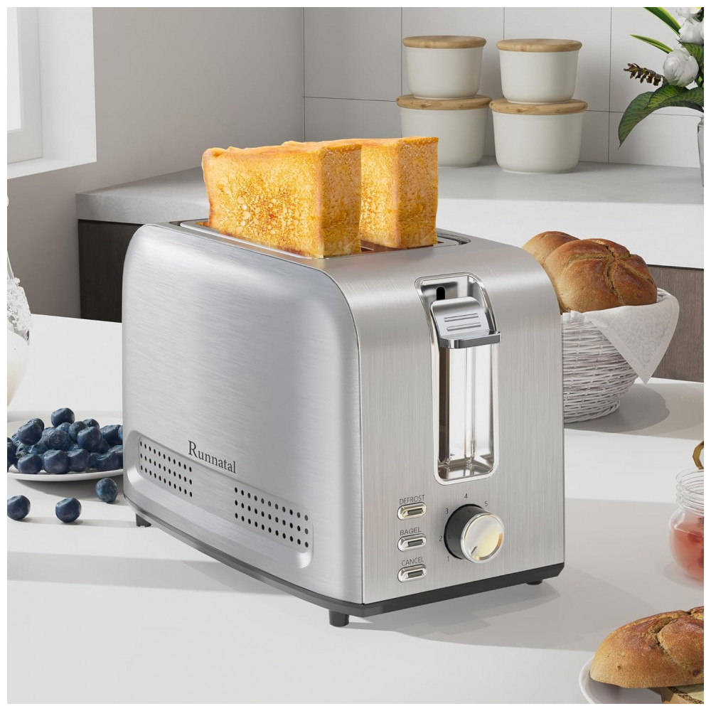 Torradeira Elética 2 Fatias com 7 Níveis de Tostagem Aço Inoxidável 110V Runnatal Prata