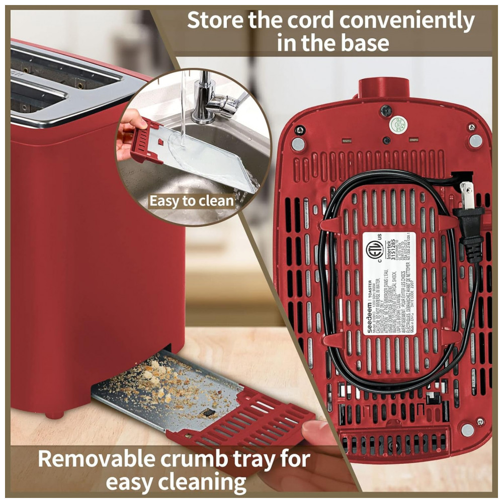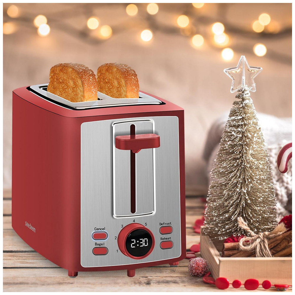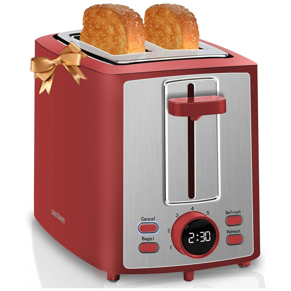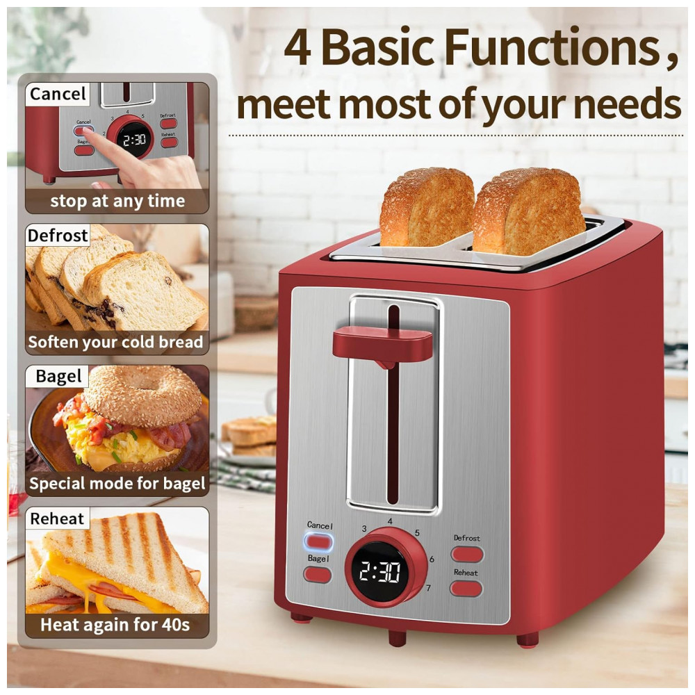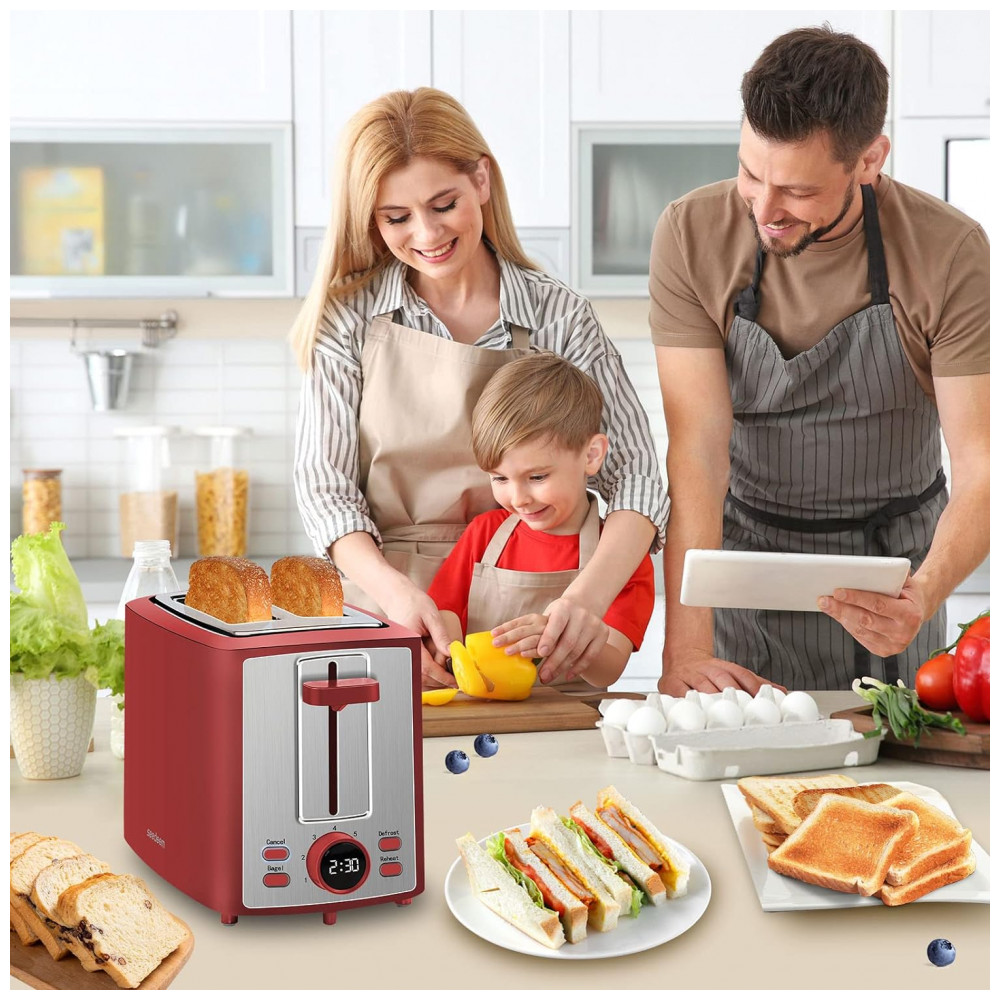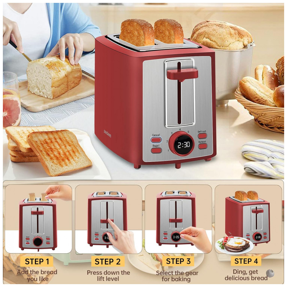 Torradeira Elétrica 2 Fatias 7 Níveis de Tostagem Display LCD 110V 900W SEEDEEM Vermelha